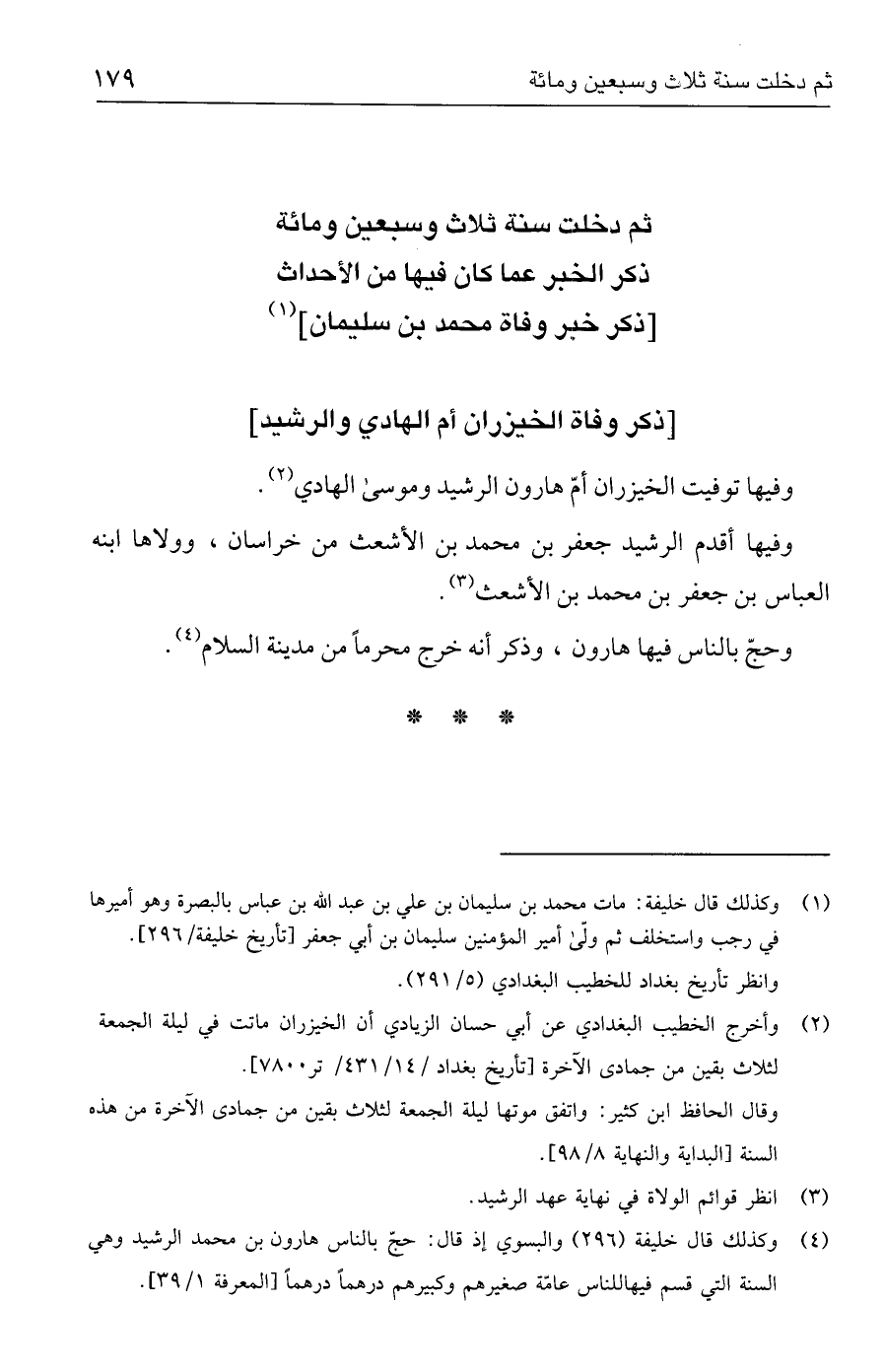 (٤) وكذلك قال خليفة (٢٩٦) والبسوي إذ قال: حجّ بالناس هارون بن محمد الرشيد وهي السنة التي قسم فيها للناس عامّة صغيرهم وكبيرهم درهمًا درهمًا [المعرفة ١/ ٣٩].