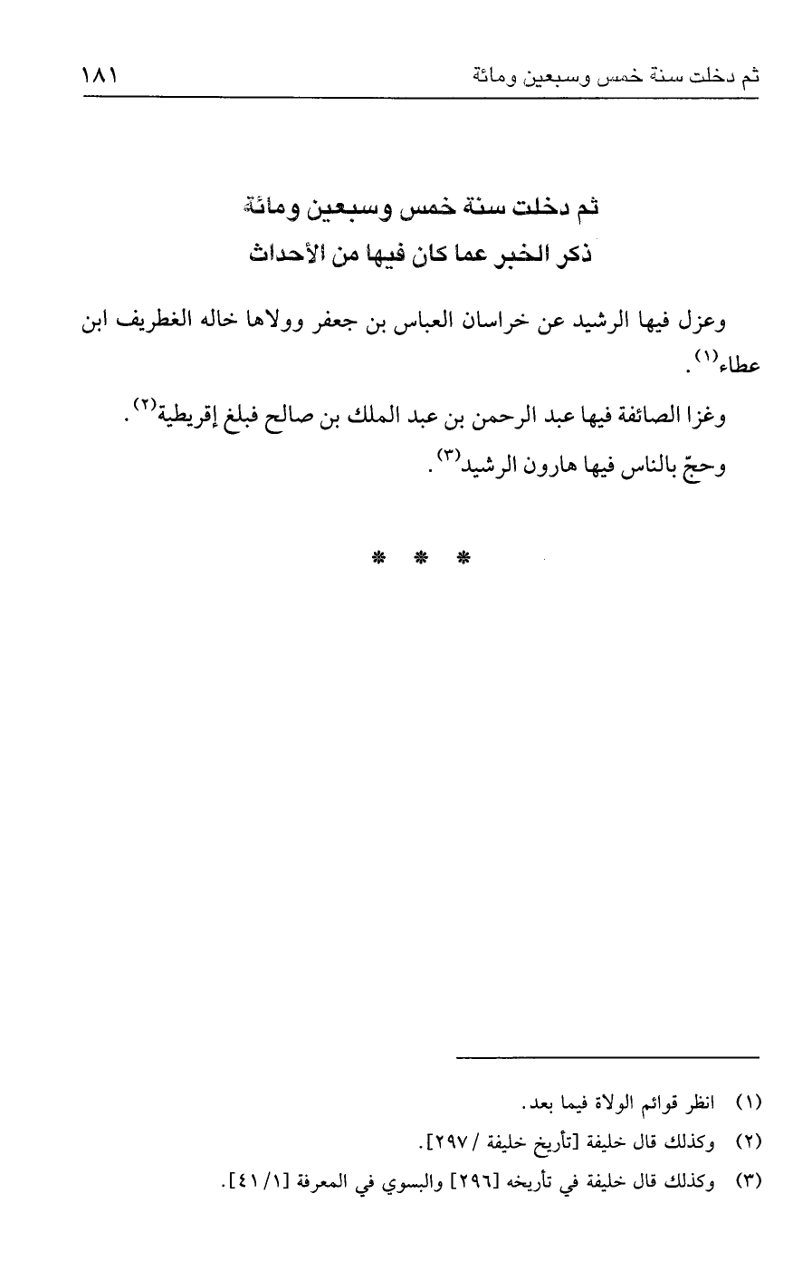 (٢) وكذلك قال خليفة [تأريخ خليفة / ٢٩٧].