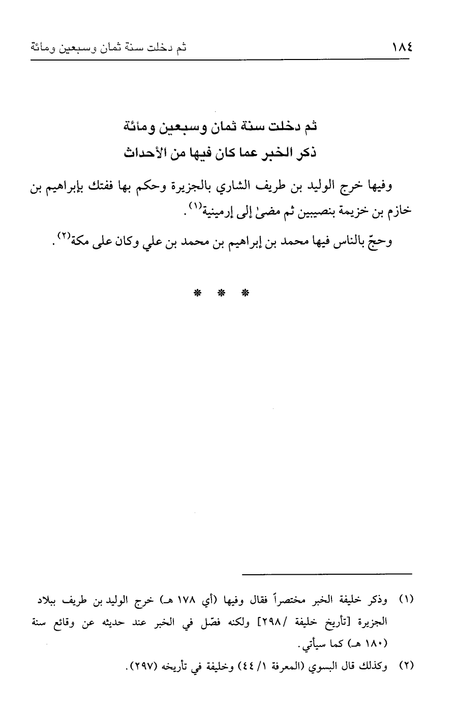 (١) وذكر خليفة الخبر مختصرًا فقال وفيها (أي ١٧٨ هـ) خرج الوليد بن طريف ببلاد الجزيرة [تأريخ خليفة / ٢٩٨] ولكنه فصّل في الخبر عند حدثه عن وقائع سنة (١٨٠ هـ) كما سيأتي.