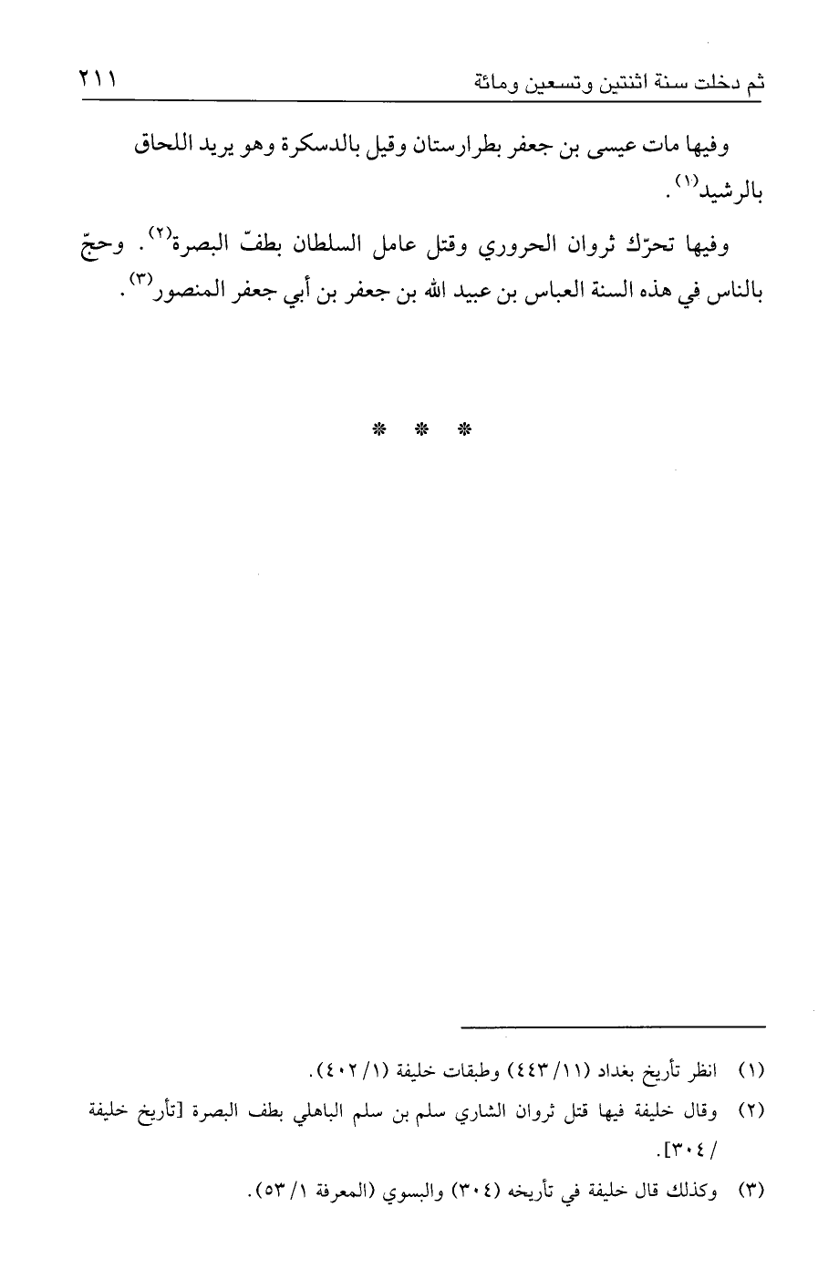 (٢) وقال خليفة فيها قتل ثروان الشاري سلم بن سلم الباهلي بطف البصرة [تأريخ خليفة / ٣٠٤].