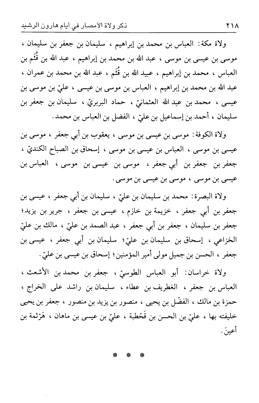 ولاة خراسان: أبو العباس الطوسيّ، جعفر بن محمد بن الأشعث، العباس بن جعفر، الغطريف بن عطاء، سليمان بن راشد على الخراج، حمزة بن مالك، الفضل بن يحيى، منصور بن يزيد بن منصور، جعفر بن يحيى خليفته بها، عليّ بن الحسن بن قَحْطبة، عليّ بن عيسى بن ماهان، هَرْثمة بن أعينَ.