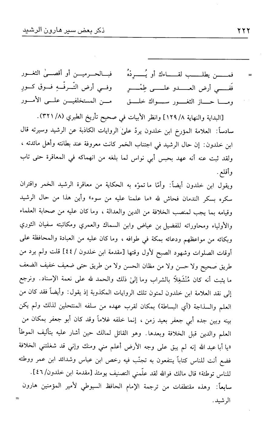 سابعًا: وهذه مقتطفات من ترجمة الإمام الحافظ السيوطي لأمير المؤمنين هارون الرشيد. =