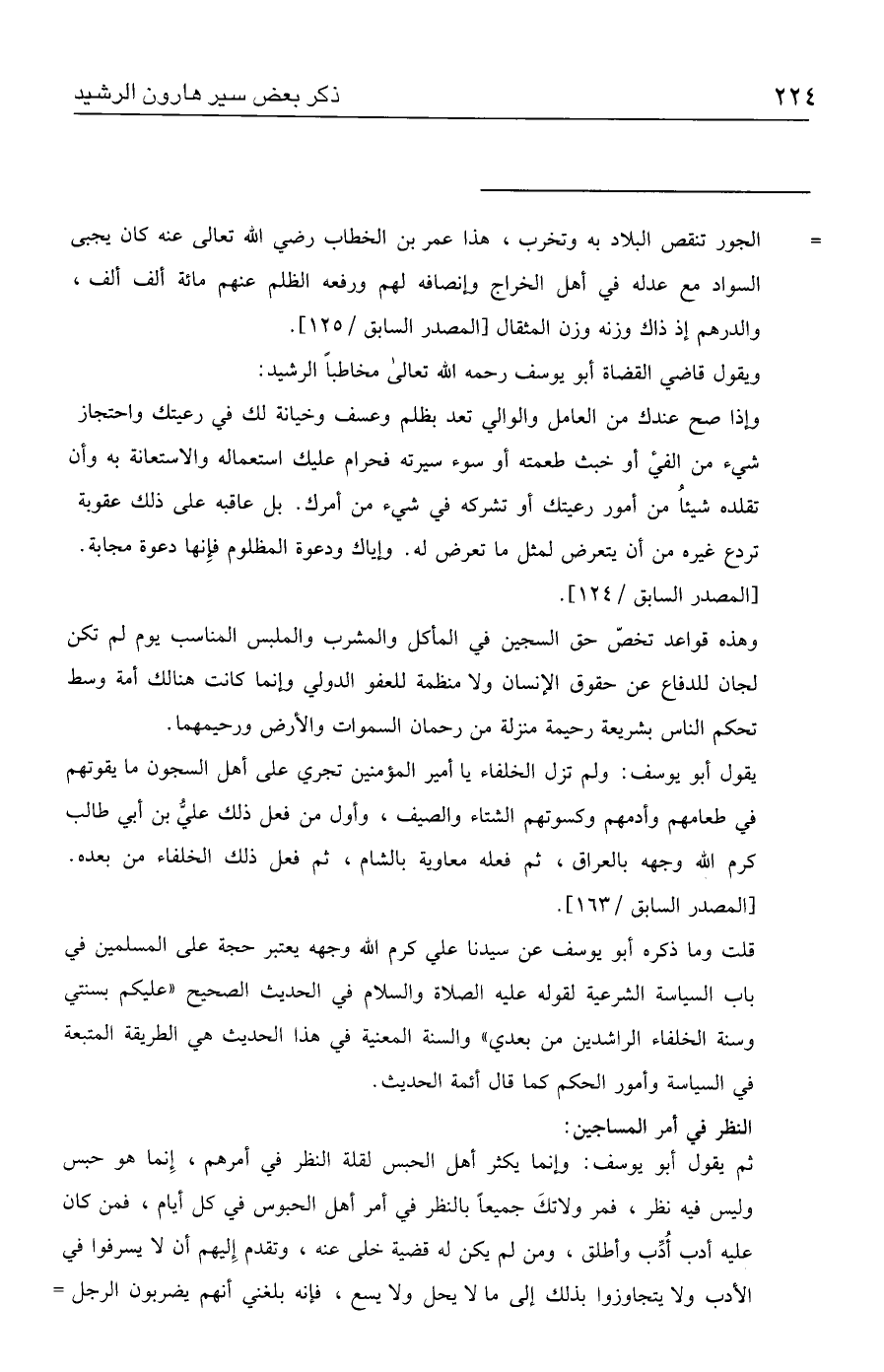 ويقول قاضي القضاة أبو يوسف رحمه الله تعالى مخاطبًا الرشيد: