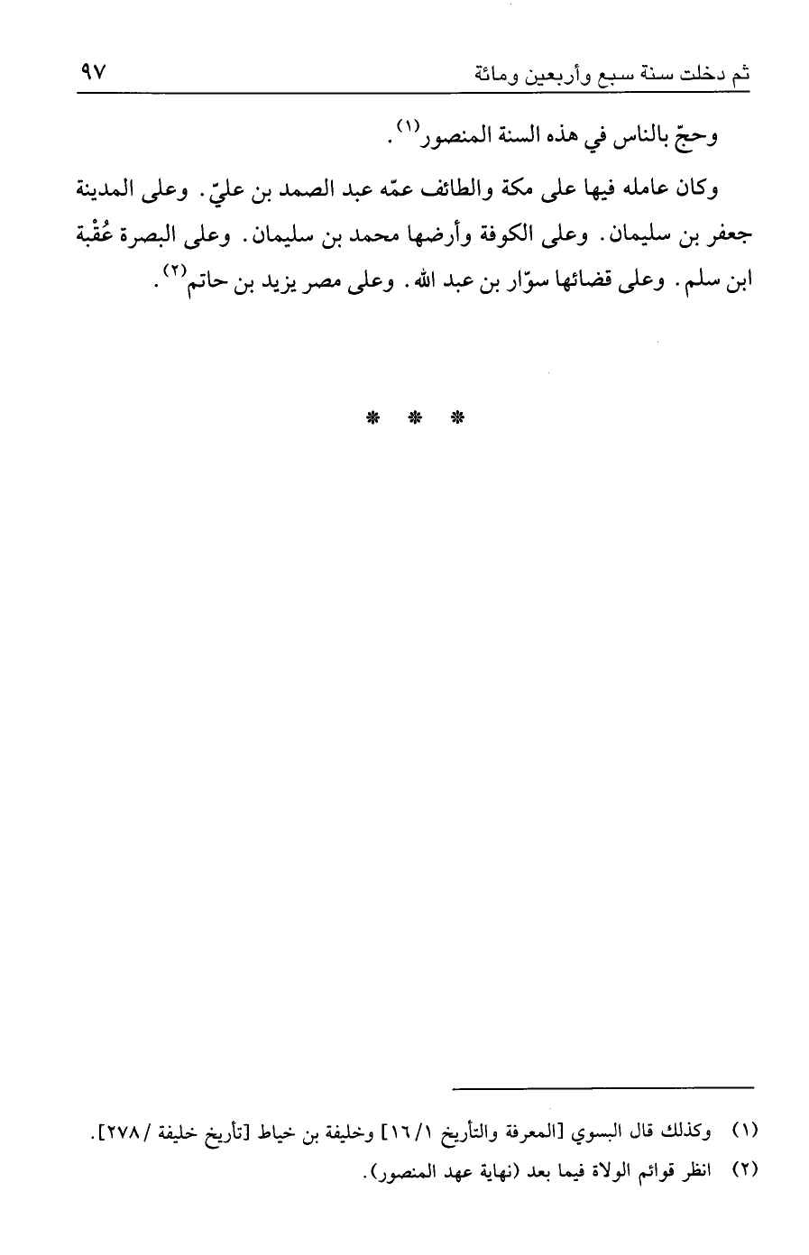 (٢) انظر قوائم الولاة فيما بعد (نهاية عهد المنصور).