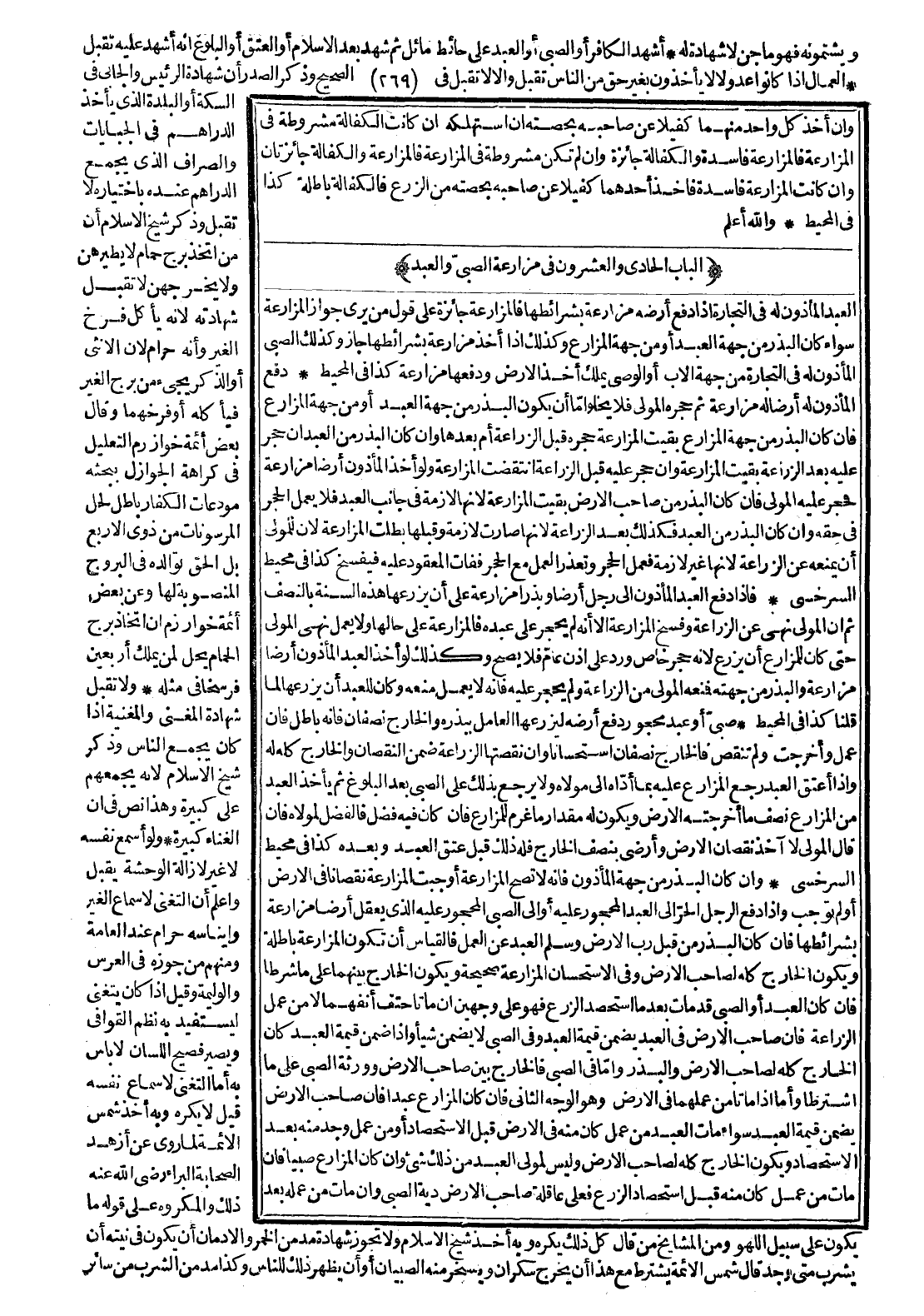 [الْبَاب الْحَادِي وَالْعِشْرُونَ فِي مُزَارَعَةِ الصَّبِيِّ وَالْعَبْدِ]