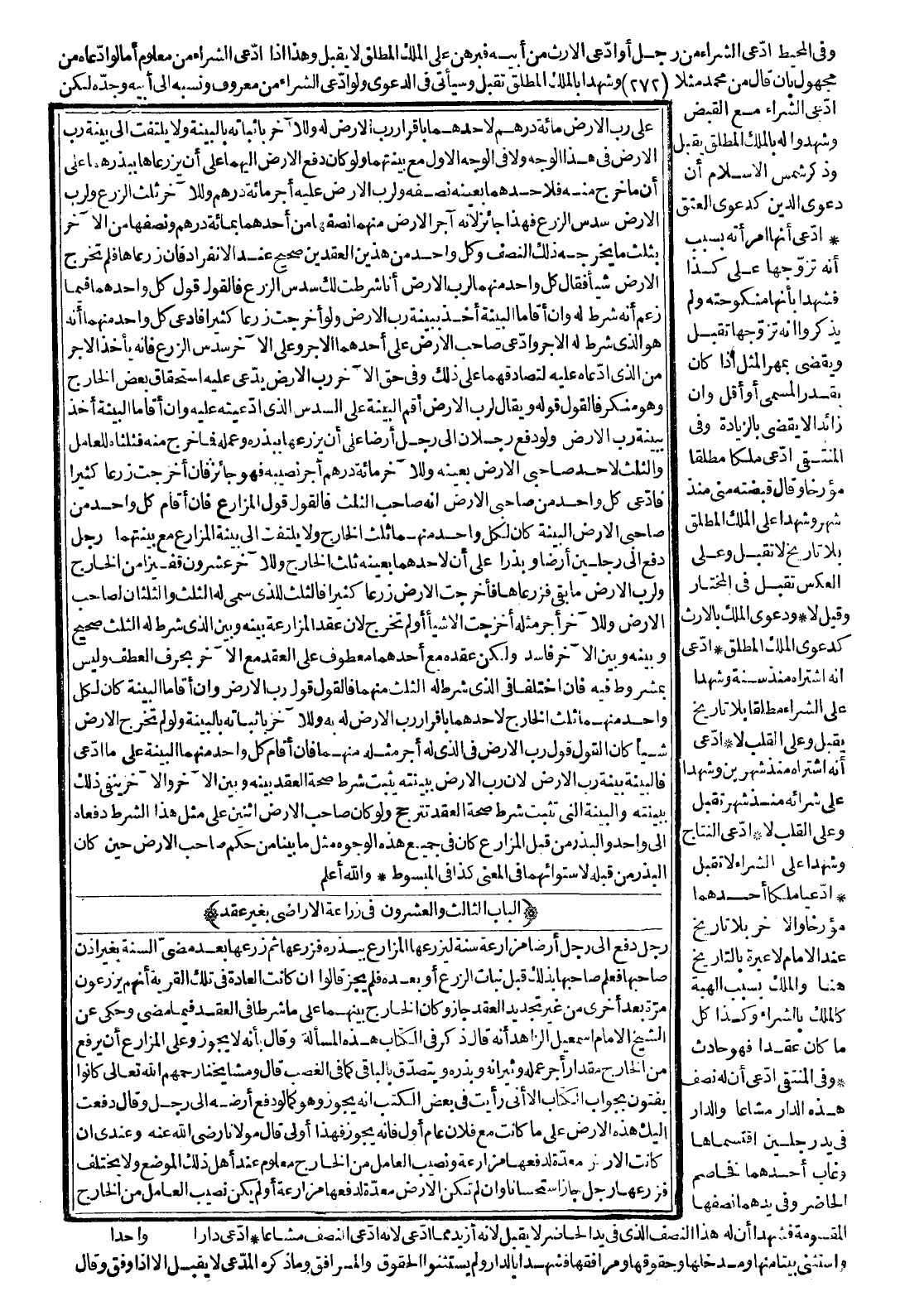 [الْبَابُ الثَّالِثُ وَالْعِشْرُونَ فِي زِرَاعَةِ الْأَرَاضِي بِغَيْرِ عَقْدٍ]