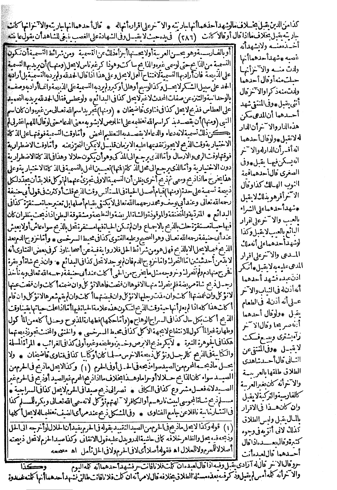 وَأَمَّا الَّذِي يَرْجِعُ إلَى مَحَلِّ الذَّكَاةِ: (فَمِنْهَا) تَعْيِينُ الْمَحَلِّ بِالتَّسْمِيَةِ فِي الذَّكَاةِ الِاخْتِيَارِيَّةِ، وَعَلَى هَذَا يَخْرُجُ مَا إذَا ذَبَحَ وَسَمَّى، ثُمَّ ذَبَحَ أُخْرَى يَظُنُّ أَنَّ التَّسْمِيَةَ الْأُولَى تُجْزِئُ عَنْهُمَا لَمْ تُؤْكَلْ فَلَا بُدَّ أَنْ يُجَدِّدَ لِكُلِّ ذَبِيحَةٍ تَسْمِيَةً عَلَى حِدَةٍ. (وَمِنْهَا) قِيَامُ أَصْلِ الْحَيَاةِ فِي الْمُسْتَأْنَسِ وَقْتَ الذَّبْحِ قَلَّتْ أَوْ كَثُرَتْ فِي قَوْلِ أَبِي حَنِيفَةَ - رَحِمَهُ اللَّهُ تَعَالَى -، وَعِنْدَ أَبِي يُوسُفَ وَمُحَمَّدٍ - رَحِمَهُمَا اللَّهُ تَعَالَى - لَا يُكْتَفَى بِقِيَامِ أَصْلِهَا بَلْ تُعْتَبَرُ حَيَاةٌ مُسْتَقِرَّةٌ، كَذَا فِي الْبَدَائِعِ.