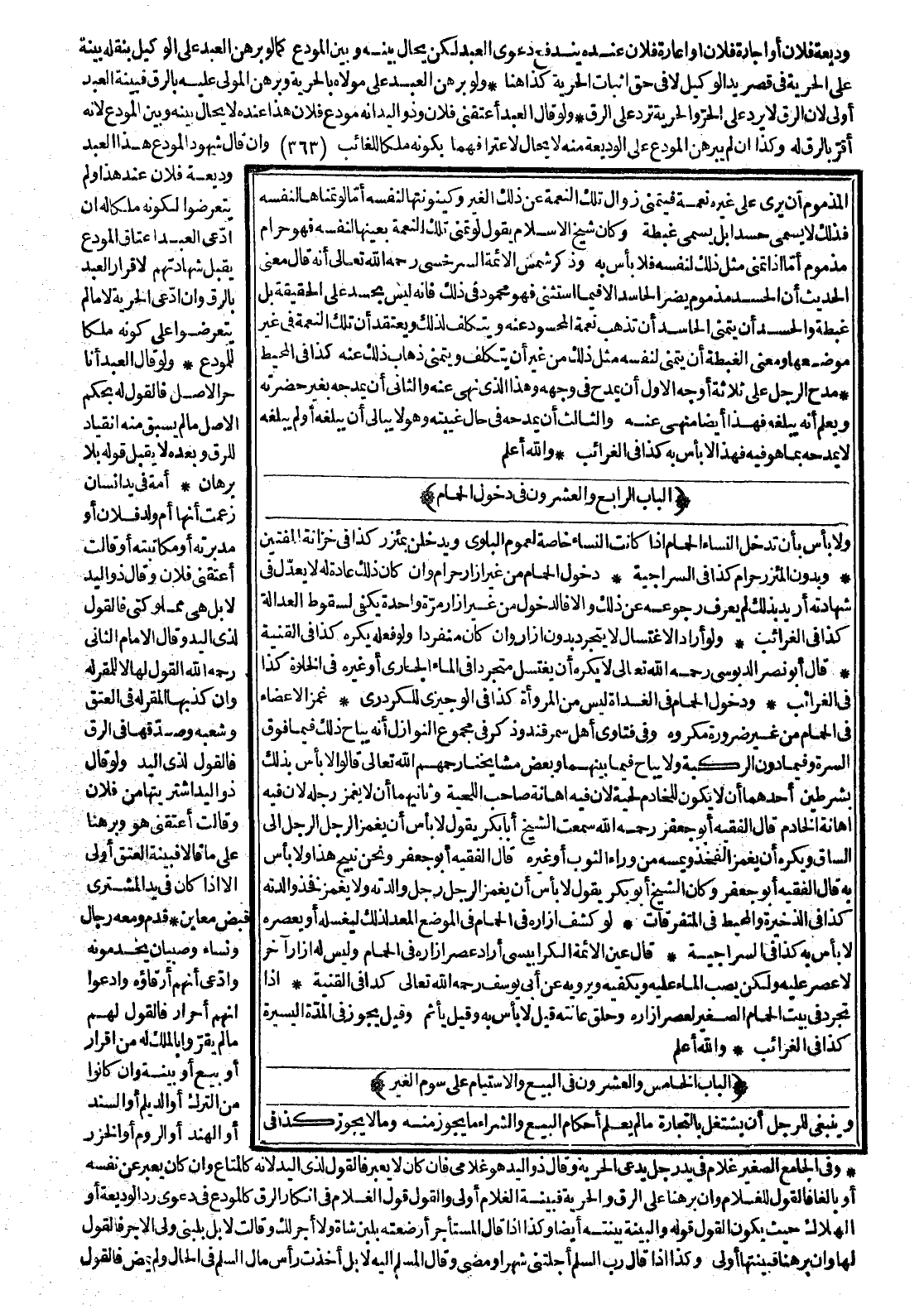 (الْبَابُ الْخَامِسُ وَالْعِشْرُونَ فِي الْبَيْعِ وَالِاسْتِيَامِ عَلَى سَوْمِ الْغَيْرِ) وَيَنْبَغِي لِلرَّجُلِ أَنْ لَا يَشْتَغِلَ بِالتِّجَارَةِ مَا لَمْ يَعْلَمْ أَحْكَامَ الْبَيْعِ وَالشِّرَاءِ مَا يَجُوزُ مِنْهُ وَمَا لَا يَجُوزُ كَذَا فِي