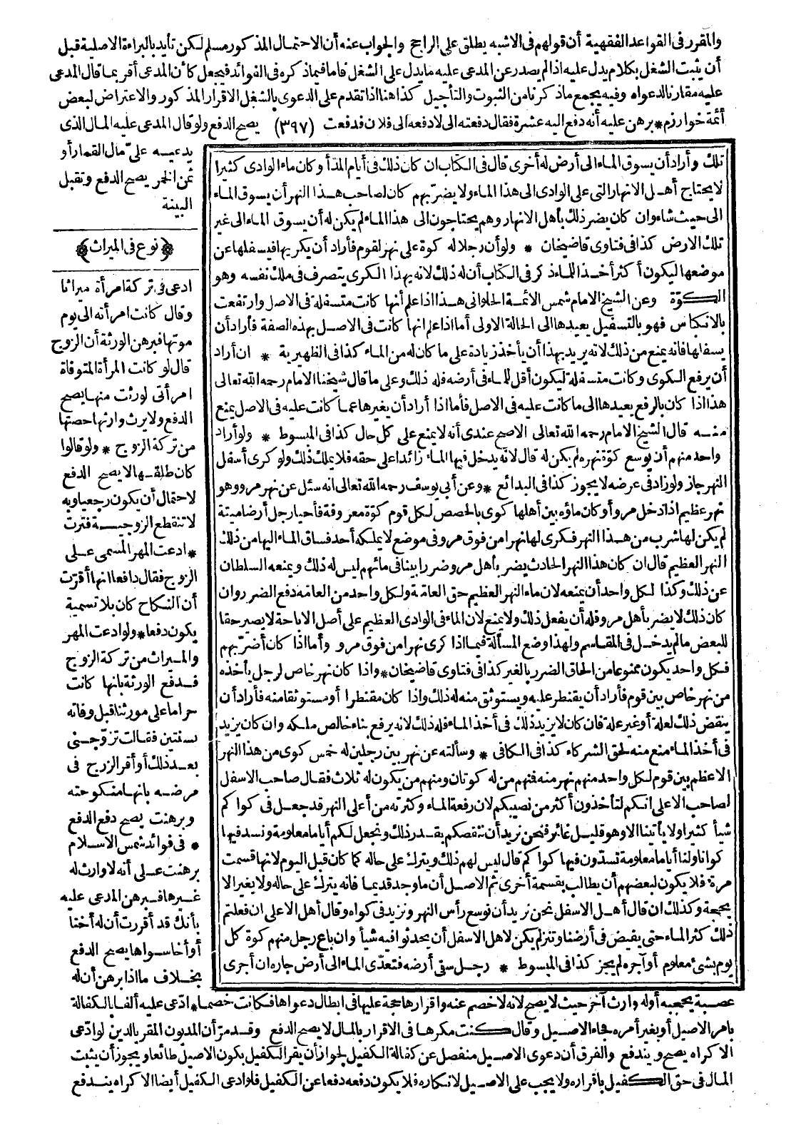 وَإِذَا كَانَ نَهْرٌ خَاصٌّ لِرَجُلٍ يَأْخُذُهُ مِنْ نَهْرٍ خَاصٍّ بَيْنَ قَوْمٍ فَأَرَادَ أَنْ يُقَنْطِرَ عَلَيْهِ وَيَسْتَوْثِقَ مِنْهُ لَهُ ذَلِكَ وَإِذَا كَانَ مُقَنْطَرًا أَوْ مُسْتَوْثَقًا مِنْهُ فَأَرَادَ أَنْ يَنْقُضَ ذَلِكَ لِعِلَّةٍ أَوْ غَيْرِ عِلَّةٍ فَإِنْ كَانَ لَا يَزِيدُ ذَلِكَ فِي أَخْذِ الْمَاءِ فَلَهُ ذَلِكَ لِأَنَّهُ يَرْفَعُ بِنَاءً خَالِصَ مِلْكِهِ وَإِنْ كَانَ يَزِيدُ فِي أَخْذِ الْمَاءِ مُنِعَ مِنْهُ لِحَقِّ الشُّرَكَاءِ كَذَا فِي الْكَافِي