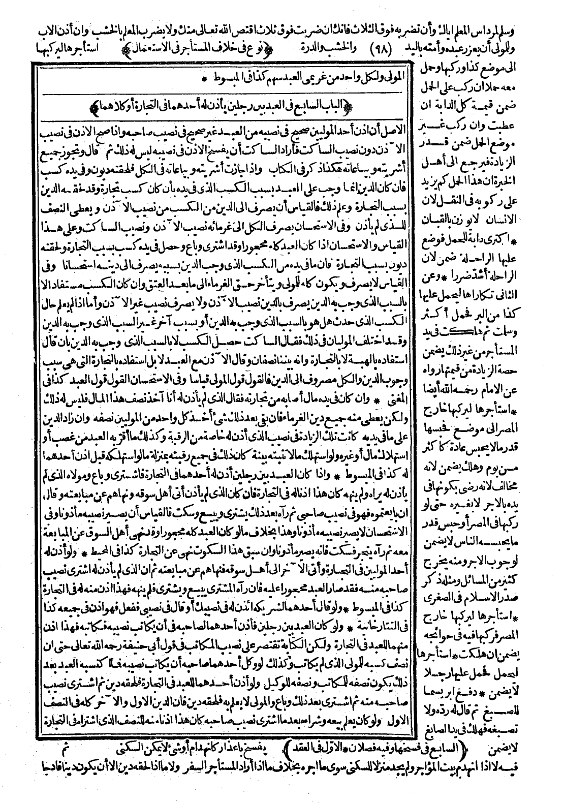 [الْبَاب السَّابِع فِي الْعَبْد بَيْن رَجُلَيْنِ يَأْذَن لَهُ أَحَدهمَا فِي التِّجَارَة أَوْ كلاهما]