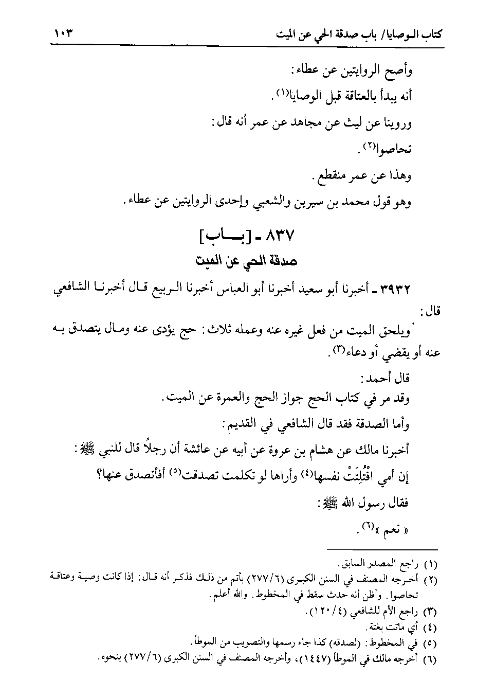 وأما الصدقة فقد قال الشافعي في القديم أخبرنا مالك عن هشام بن عروة عن أبيه عن عائشة أن رجلاً قال للنبي صلى الله عليه وسلم إن أمي افتلتت نفسها وأراها لو تكلمت تصدقت أفأتصدق عنها ؟ فقال رسول الله صلى الله عليه وسلم نعم.