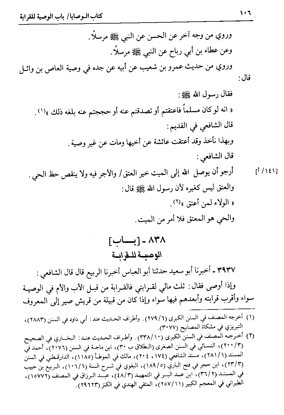 3937 - أخبرنا أبو سعيد حدثنا أبو العباس أخبرنا الربيع قال قال الشافعي وإذا أوصى فقال : ثلث مالي لقرابتي فالقرابة من قبل الأب والأم في الوصية سواء وأقرب قرابته وأبعدهم فيها سواء وإذا كان من قبيلة من قريش صير إلى المعروف