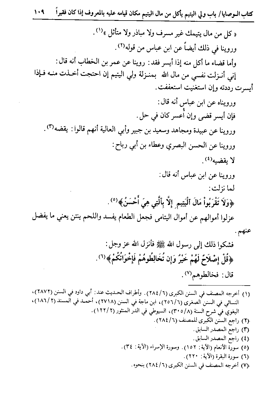 وروينا عن ابن عباس أنه قال لما نزلت {ولا تقربوا مال اليتيم إلا بالتي هي أحسن} عزلوا أموالهم عن أموال اليتامى فجعل الطعام يفسد واللحم ينتن يعني ما يفضل عنهم.