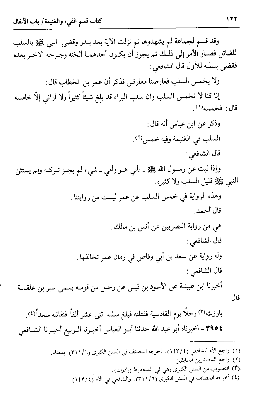 قال الشافعي أخبرنا ابن عيينة عن الأسود بن قيس عن رجل من قومه يسمى سبر بن علقمة قال بارزت رجلاً يوم القادسية فقتلته فبلغ سلبه اثني عشر ألفاً فنفانيه سعداً.