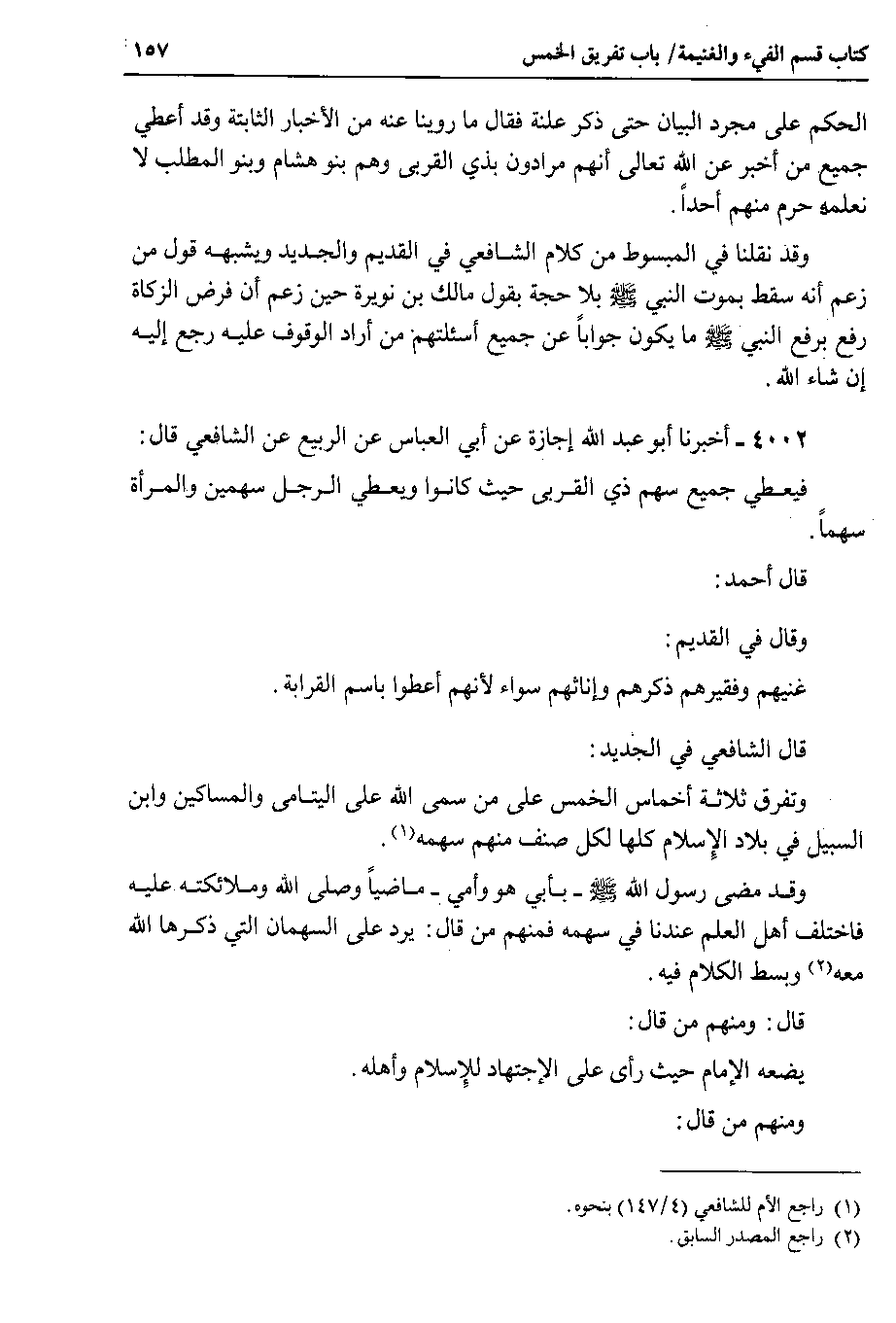 4002 - أخبرنا أبو عبد الله إجازة عن أبي العباس عن الربيع عن الشافعي قال فيعطي جميع سهم ذي القربى حيث كانوا ويعطي الرجل سهمين والمرأة سهماً.