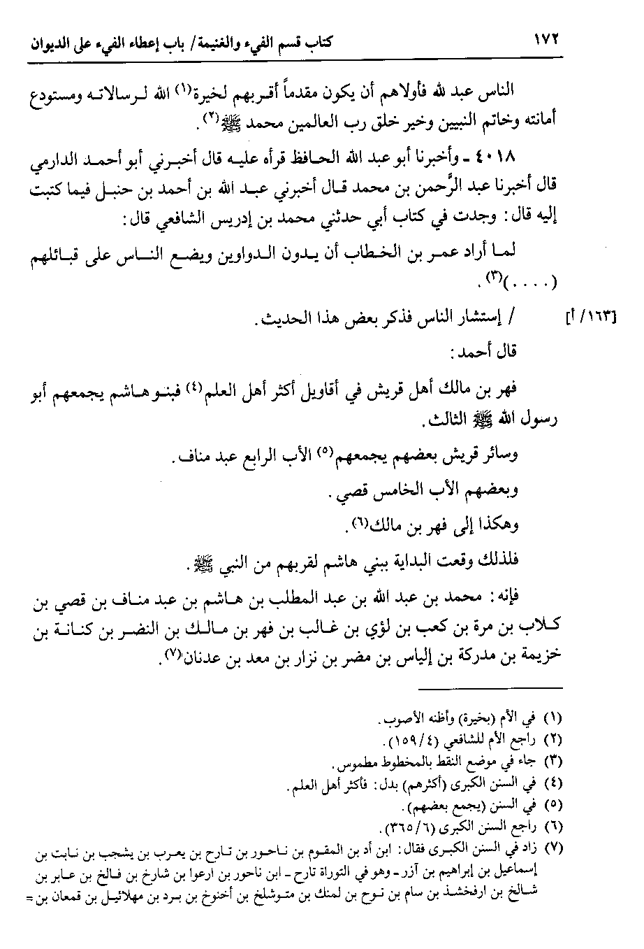 4018 - وأخبرنا أبو عبد الله الحافظ قرأه عليه قال أخبرني أبو أحمد الدرامي قال أخبرنا عبد الرحمن بن محمد قال أخبرني عبد الله بن أحمد بن حنبل فيما كتبت إليه قال : وجدت في كتاب أبي حدثني محمد بن إدريس الشافعي قال لما أراد عمر بن الخطاب أن يدون الدواوين ويضع الناس على قبائلهم ( . . . . . . . ).