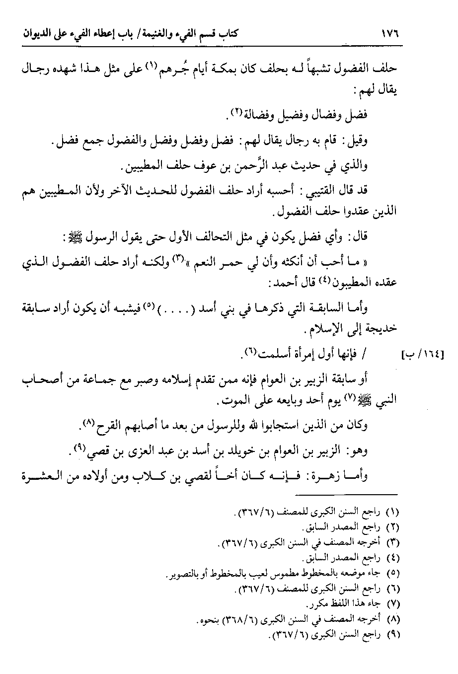 قال : وأي فضل يكون في مثل التحالف الأول حتى يقول الرسول صلى الله عليه وسلم ما أحب أن أنكثه وأن لي حمر النعم ولكنه أراد حلف الفضول الذي عقده المطيبون قال أحمد وأما السابقة التي ذكرها في بني أسد ( . . . . . . . ) فيشبه أن يكون أراد سابقة خديجة إلى الإسلام.