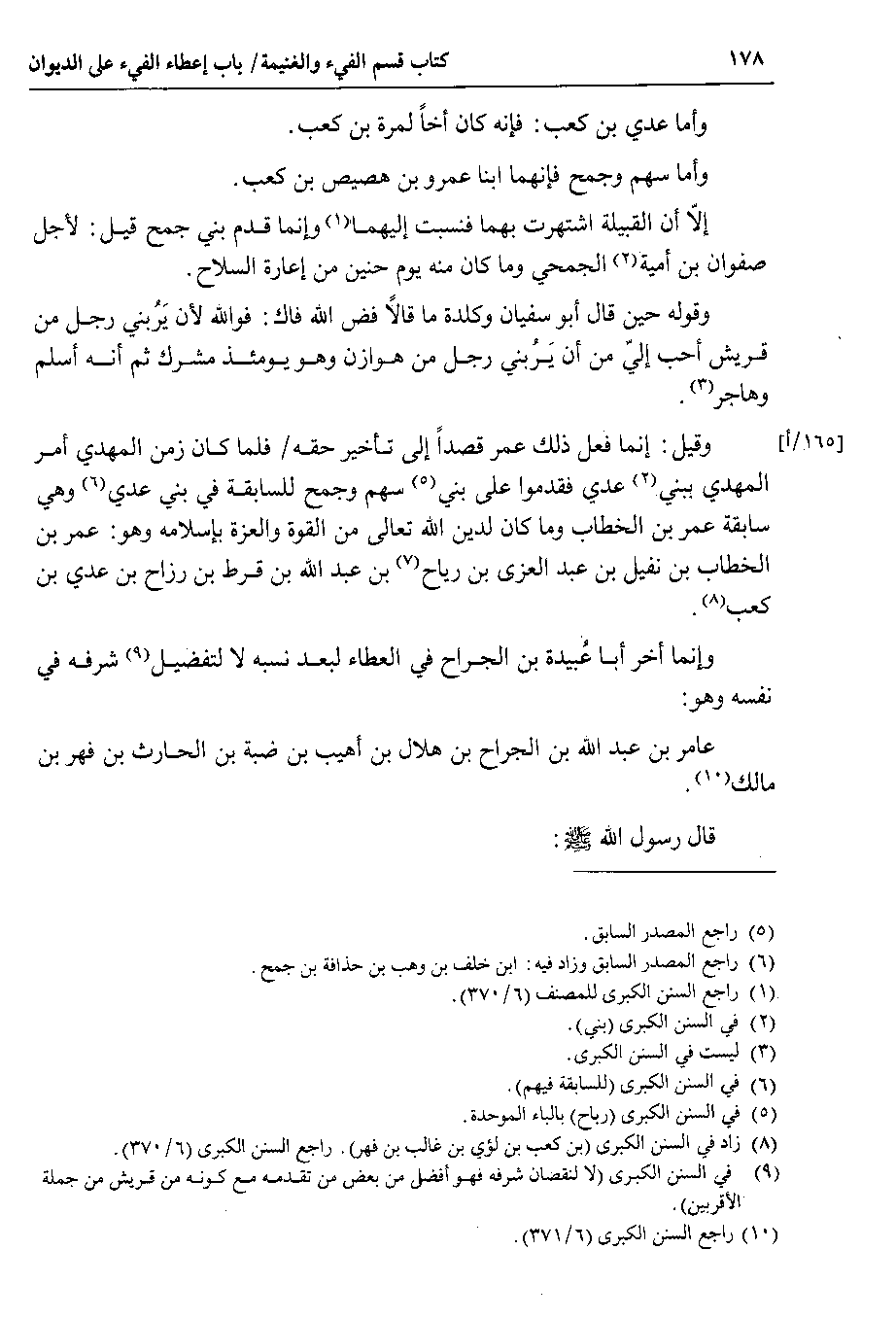 وإنما أخر أبا عبيدة بن الجراح في العطاء لبعد نسبه لا لتفضيل شرفه في نفسه وهو عامر بن عبد الله بن الجراح بن هلال بن أهيب بن ضبة بن الحارث بن فهر بن مالك.