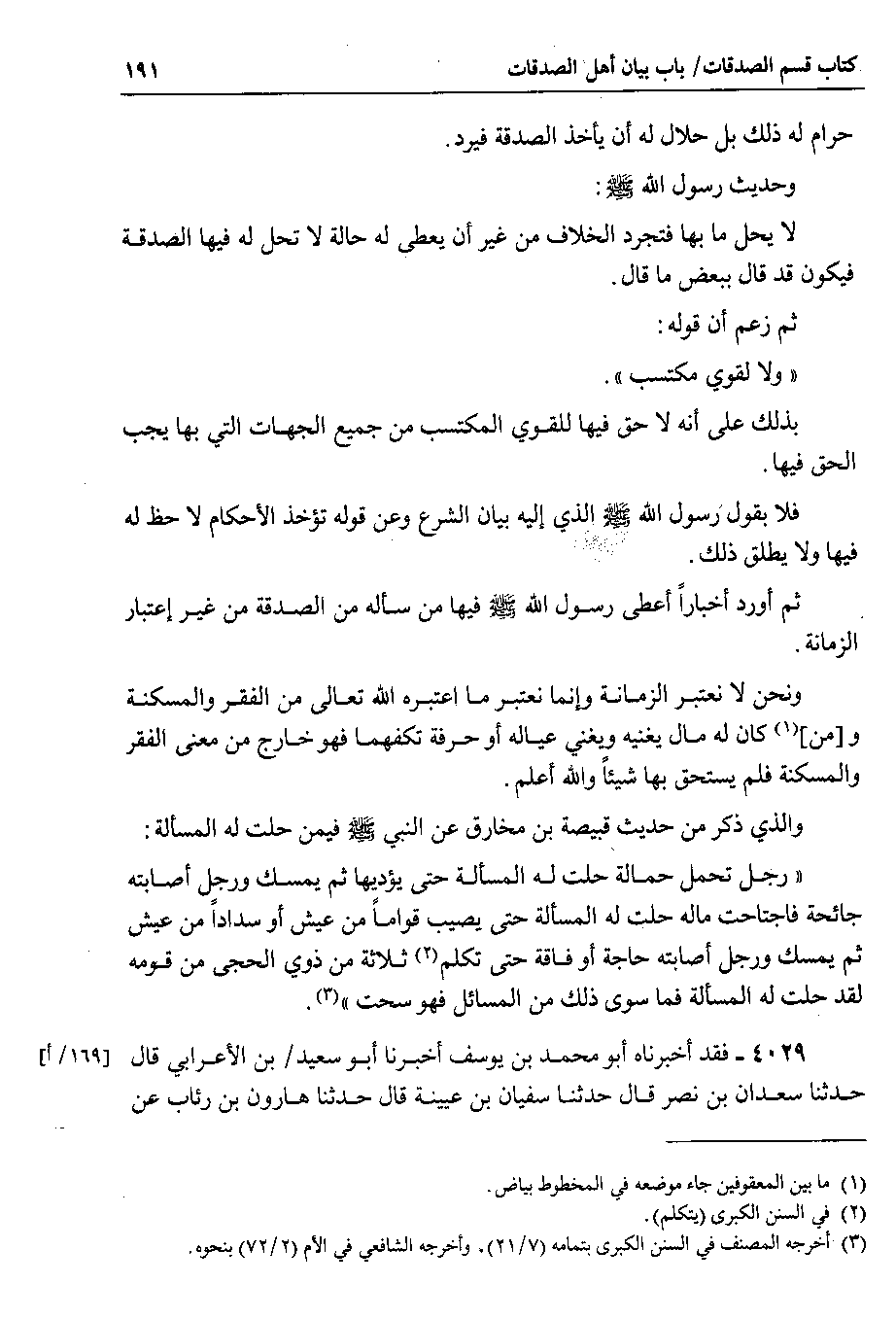 ونحن لا نعتبر الزمانة وإنما نعتبر ما اعتبره الله تعالى من الفقر والمسكنة و من كان له مال يغنيه ويغني عياله أو حرفة تكفهما فهو خارج من معنى الفقر والمسكنة فلم يستحق بها شيئاً والله أعلم.