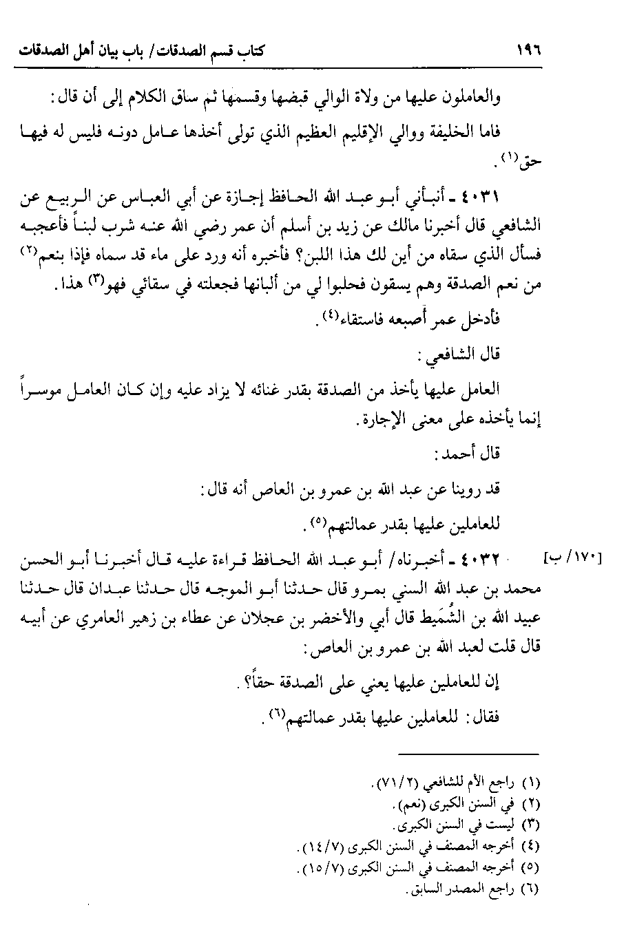 4031 - أنبأني أبو عبد الله الحافظ إجازة عن أبي العباس عن الربيع عن الشافعي قال أخبرنا مالك عن زيد بن أسلم أن عمر رضي الله عنه شرب لبنا فأعجبه فسأل الذي سقاه من أين لك هذا اللبن ؟ فأخبره أنه ورد على ماء قد سماه فإذا بنعم من نعم الصدقة وهم يسقون فحلبوا لي من ألبانها فجعلته في سقائي فهو هذا.