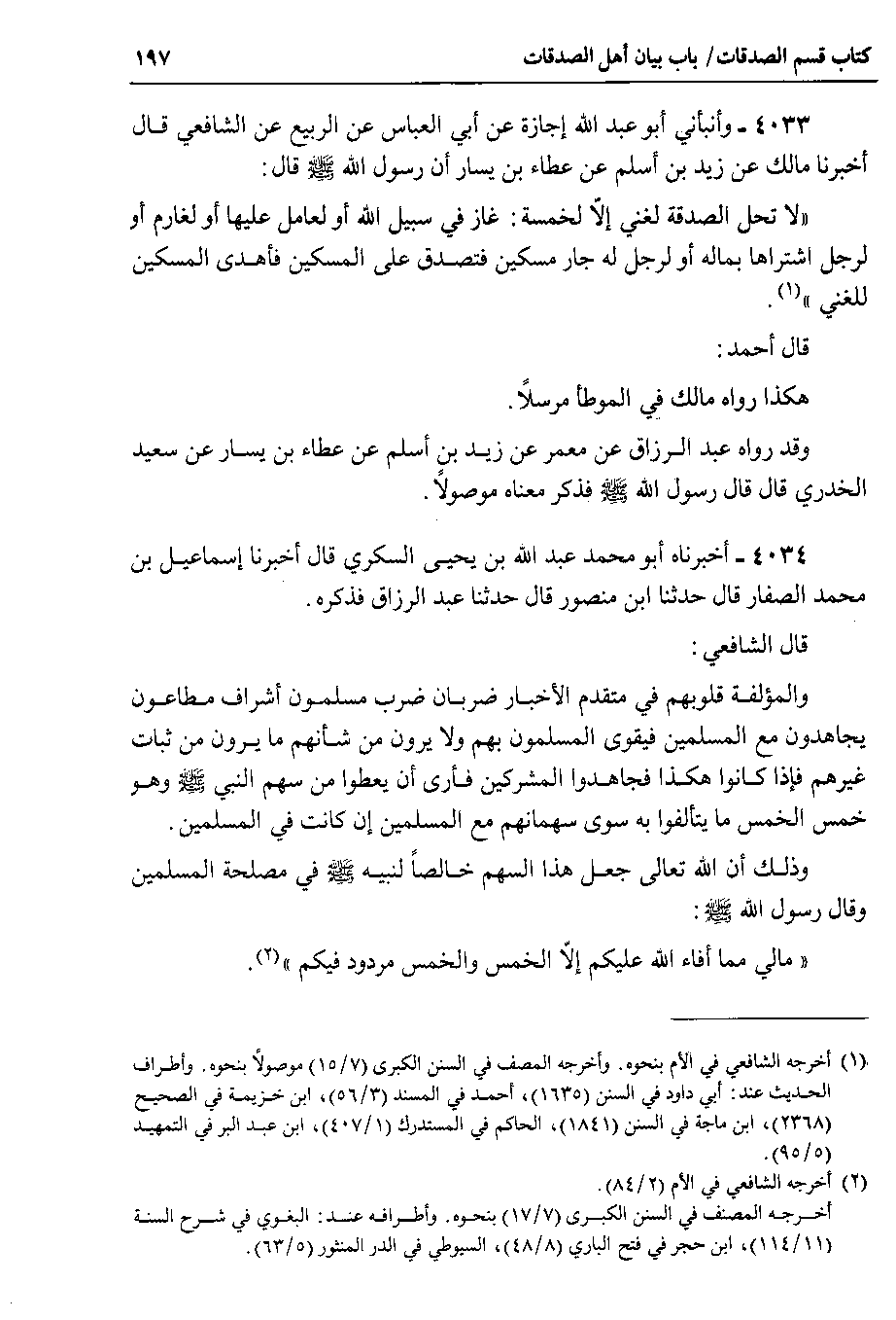 4033 - وأنبأني أبو عبد الله إجازة عن أبي العباس عن الربيع عن الشافعي قال أخبرنا مالك عن زيد بن أسلم عن عطاء بن يسار أن رسول الله صلى الله عليه وسلم قال لا تحل الصدقة لغني إلا لخمسة : غاز في سبيل الله أو لعامل عليها أو لغارم أو لرجل اشتراها بماله أو لرجل له جار مسكين فتصدق على المسكين فأهدى المسكين للغني.