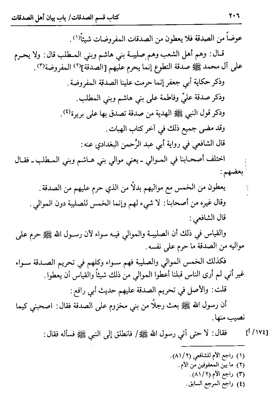 قلت : والأصل في تحريم الصدقة عليهم حديث أبي رافع أن رسول الله صلى الله عليه وسلم بعث رجلاً من بني مخزوم على الصدقة فقال : اصحبني كيما نصيب منها.
