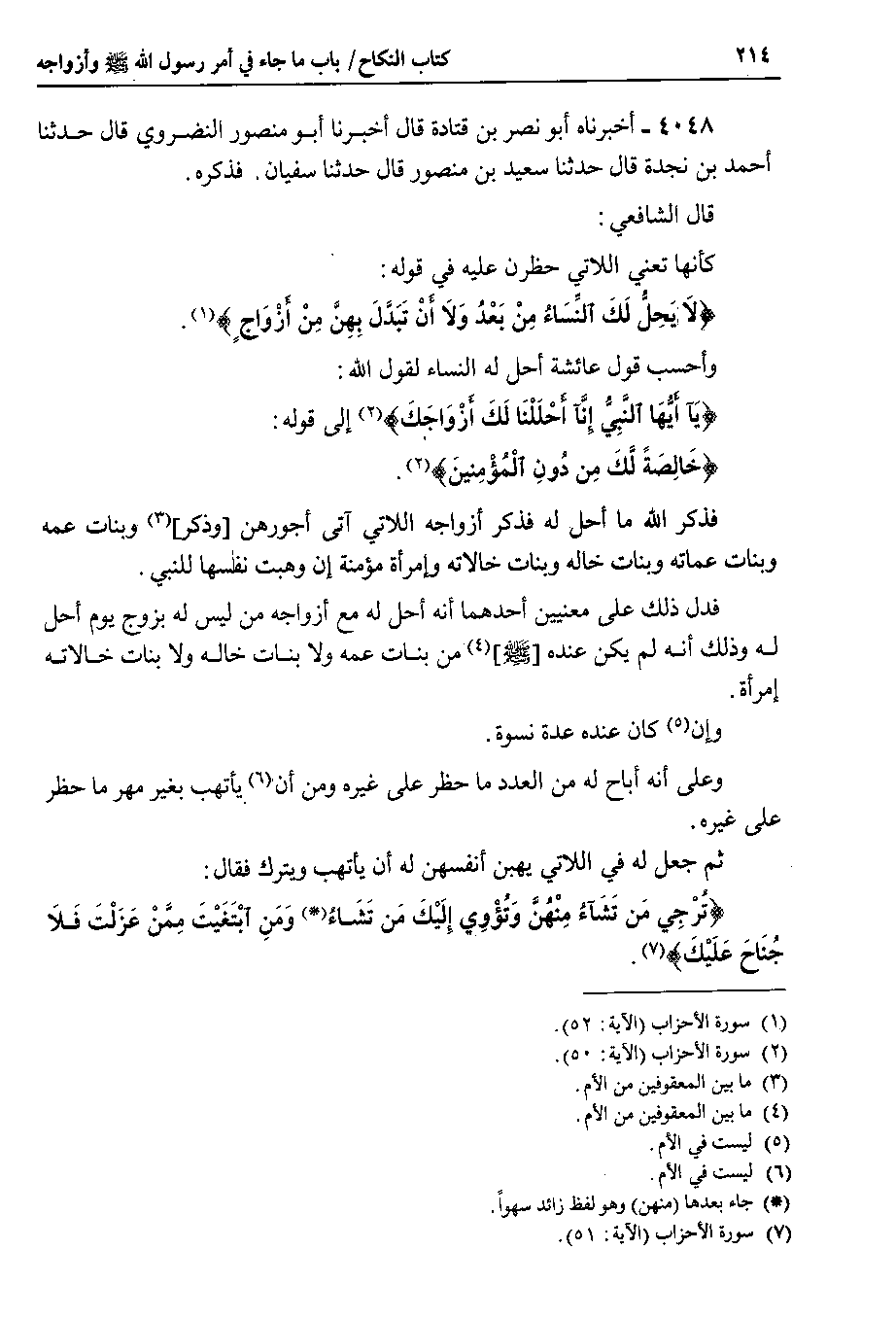 قال الشافعي كأنها تعني اللاتي حظرن عليه في قوله {لا يحل لك النساء من بعد ولا أن تبدل بهن من أزواج}.