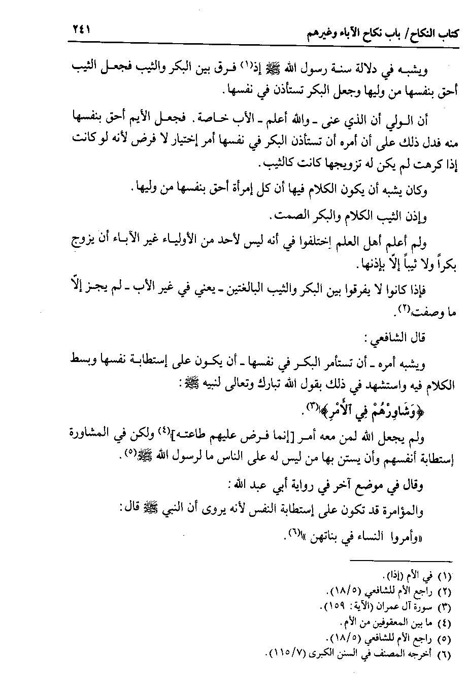 ويشبه في دلالة سنة رسول الله صلى الله عليه وسلم إذ فرق بين البكر والثيب فجعل الثيب أحق بنفسها من وليها وجعل البكر تستأذن في نفسها.
