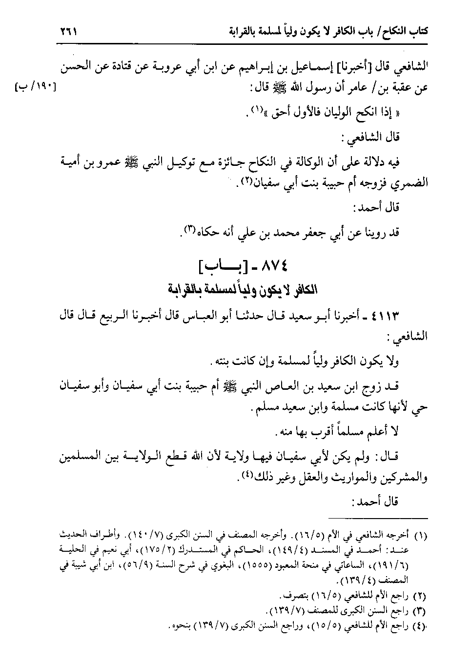 4113 - أخبرنا أبو سعيد قال حدثنا أبو العباس قال أخبرنا الربيع قال قال الشافعي ولا يكون الكافر ولياً لمسلمة وإن كانت بنته.