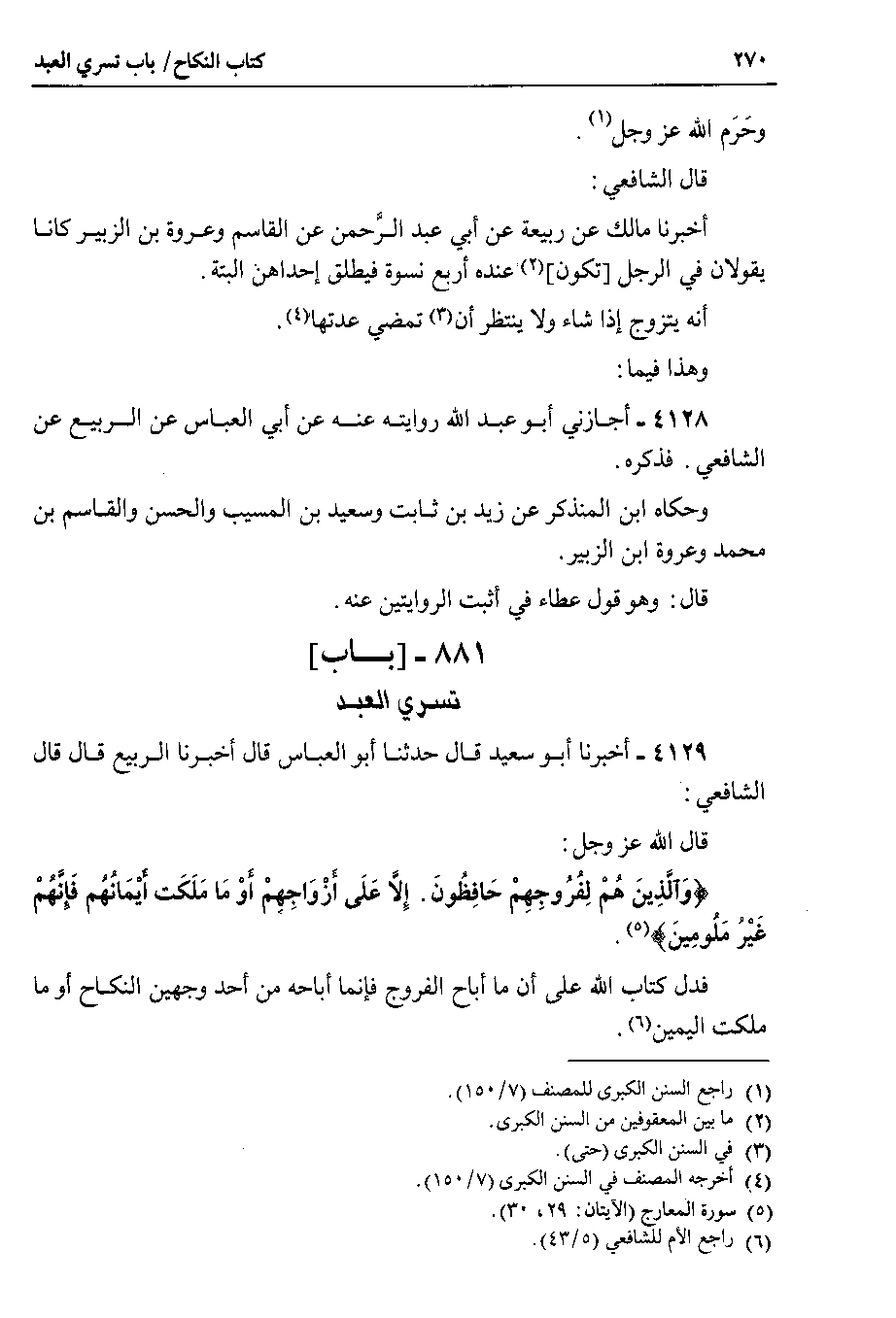 4129 - أخبرنا أبو سعيد قال حدثنا أبو العباس قال أخبرنا الربيع قال قال الشافعي قال الله عز وجل {والذين هم لفروجهم حافظون إلا على أزواجهم أو ما ملكت أيمانهم فإنهم غير ملومين}.