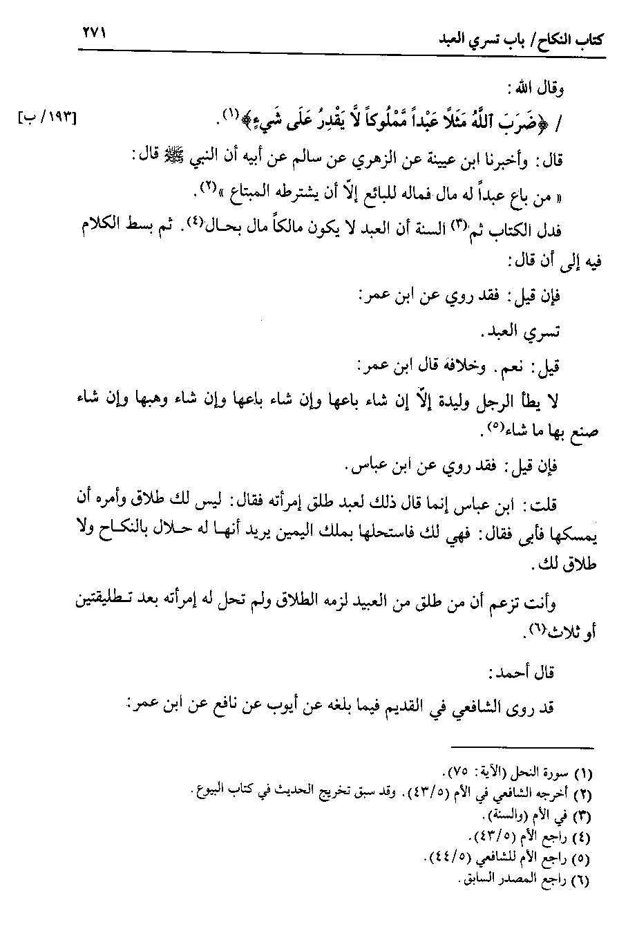 فدل الكتاب ثم السنة أن العبد لا يكون مالكاً مال بحال . ثم بسط الكلام فيه إلى أن قال فإن قيل : فقد روي عن ابن عمر تسري العبد.