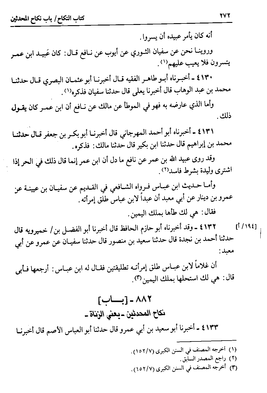 روينا نحن عن سفيان الثوري عن أيوب عن نافع قال : كان عبيد ابن عمر يتسرون فلا يعيب عليهم.