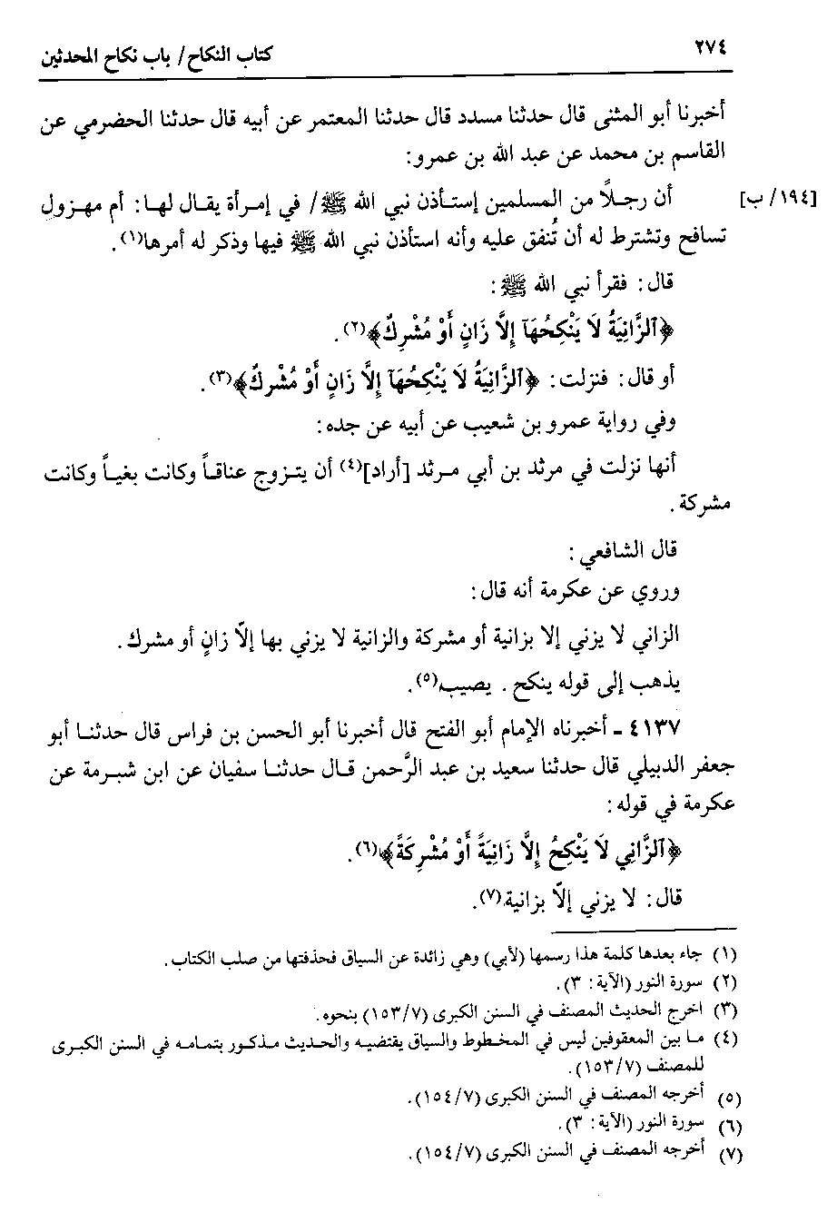 4137 - أخبرناه الإمام أبو الفتح قال أخبرنا أبو الحسن بن فراس قال حدثنا أبو جعفر الدبيلي قال حدثنا سعيد بن عبد الرحمن قال حدثنا سفيان عن ابن شبرمة عن عكرمة في قوله {الزاني لا ينكح إلا زانية أو مشركة}.