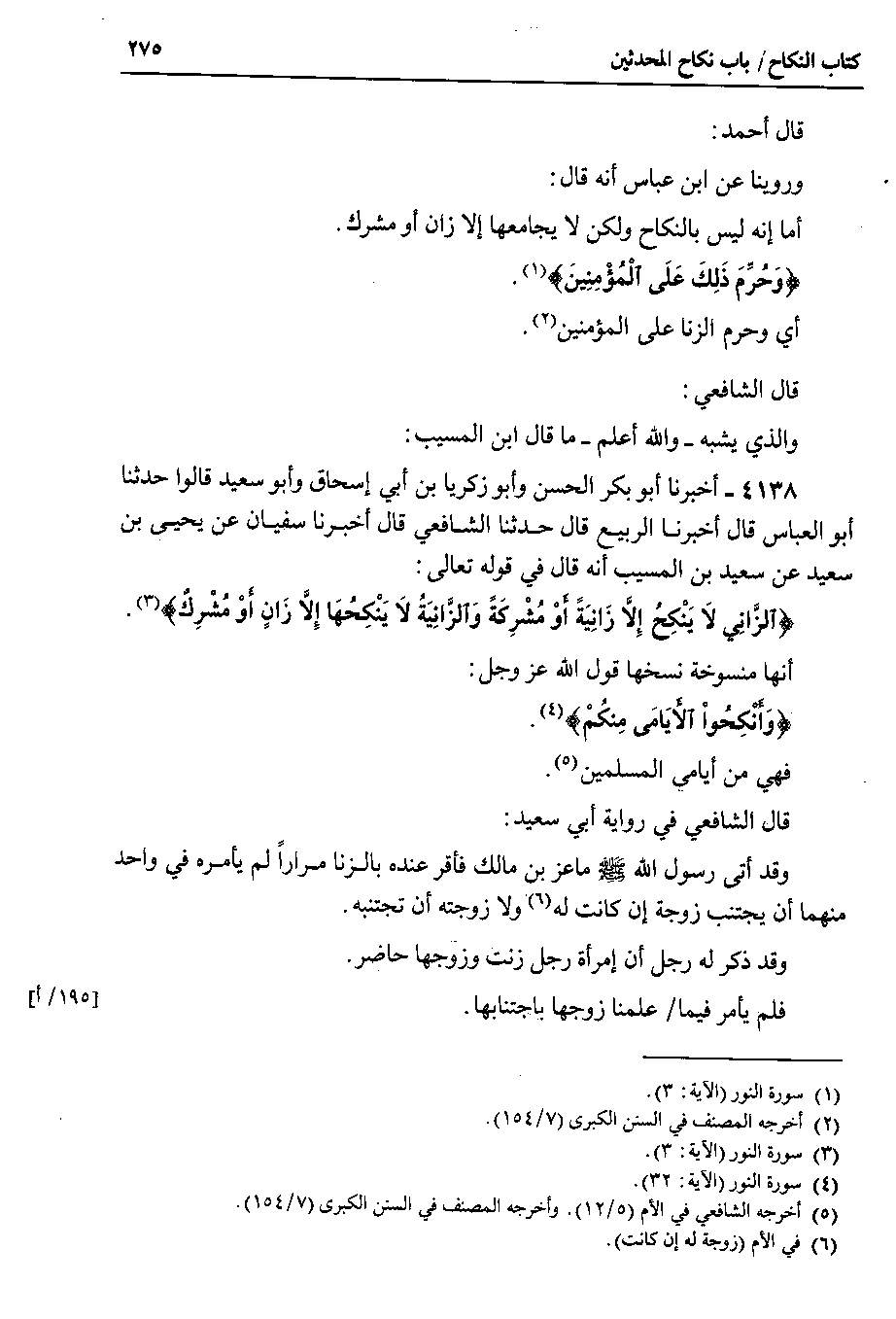 قال الشافعي والذي يشبه _ والله اعلم _ ما قال ابن المسيب 4138 - أخبرنا أبو بكر الحسن وأبو زكريا بن أبي إسحاق وأبو سعيد قالوا حدثنا أبو العباس قال أخبرنا الربيع قال حدثنا الشافعي قال أخبرنا سفيان عن يحيى بن سعيد عن سعيد بن المسيب أنه قال في قوله تعالى {الزاني لا ينكح إلا زانية أو مشركة والزانية لا ينكحها إلا زان أو مشرك}.