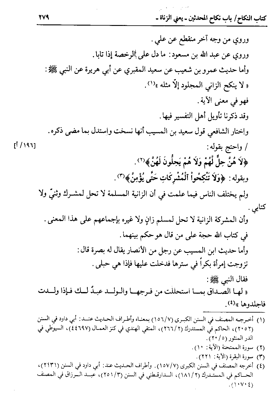 ولم يختلف الناس فيما علمت في أن الزانية المسلمة لا تحل لمشرك وثني ولا كتابي.