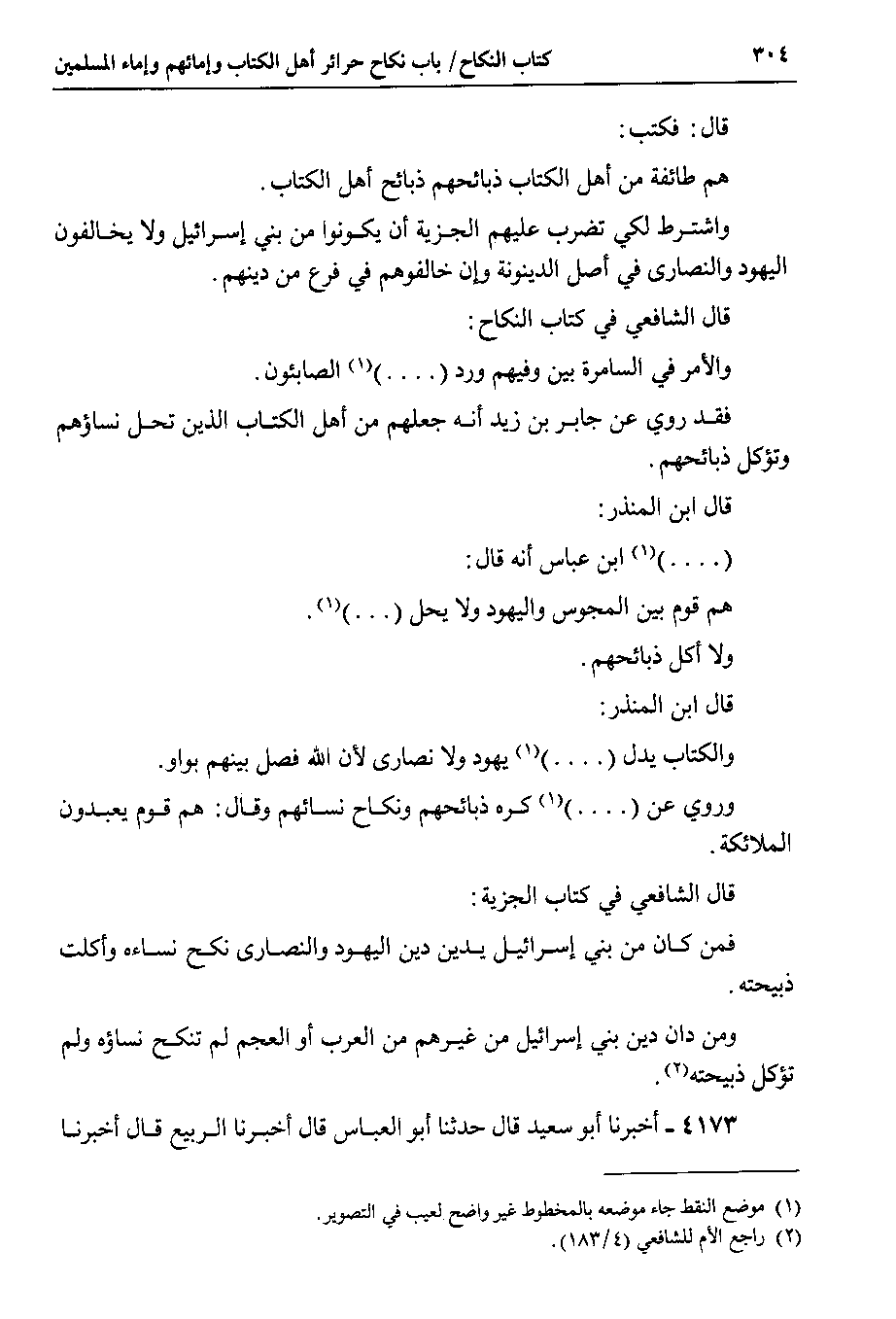 قال الشافعي في كتاب النكاح والأمر في السامرة بين وفيهم ورد ( . . . . . . . ) الصابئون.