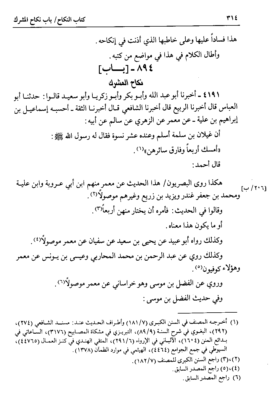 4191 - أخبرنا أبو عبد الله وأبو بكر وأبو زكريا وأبو سعيد قالوا : حدثنا أبو العباس قال أخبرنا الربيع قال أخبرنا الشافعي قال أخبرنا الثقة - أحسبه إسماعيل بن إبراهيم بن علية - عن معمر عن الزهري عن سالم عن أبيه أن غيلان بن سلمة أسلم وعنده عشر نسوة فقال له رسول الله صلى الله عليه وسلم أمسك أربعاً وفارق سائرهن.