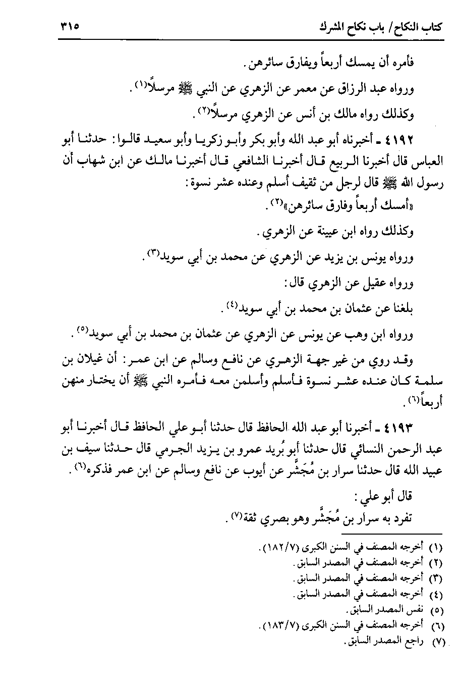 4192 - أخبرناه أبو عبد الله وأبو بكر وأبو زكريا وأبو سعيد قالوا : حدثنا أبو العباس قال أخبرنا الربيع قال أخبرنا الشافعي قال أخبرنا مالك عن ابن شهاب أن رسول الله صلى الله عليه وسلم قال لرجل من ثقيف أسلم وعنده عشرة نسوة أمسك أربعاً وفارق سائرهن.