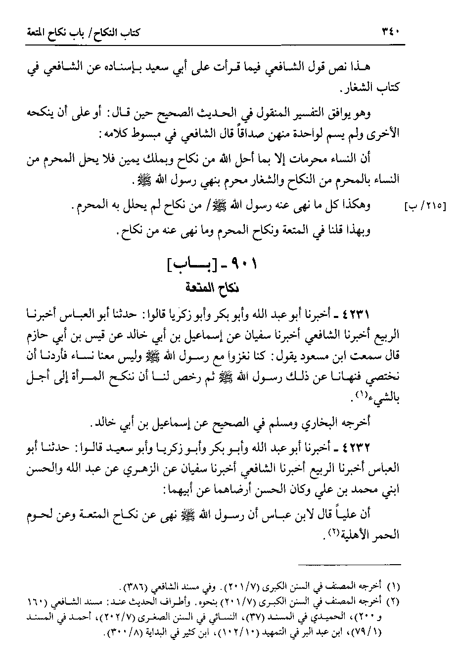 وهو يوافق التفسير المنقول في الحديث الصحيح حيث قال : أو على أن ينكحه الأخرى ولم يسم لواحدة منهن صداقاً قال الشافعي في مبسوط كلامه : أن النساء محرمات إلا بما أحل الله من نكاح وبملك يمين فلا يحل المحرم من النساء بالمحرم من النكاح والشغار محرم بنهي رسول الله صلى الله عليه وسلم.