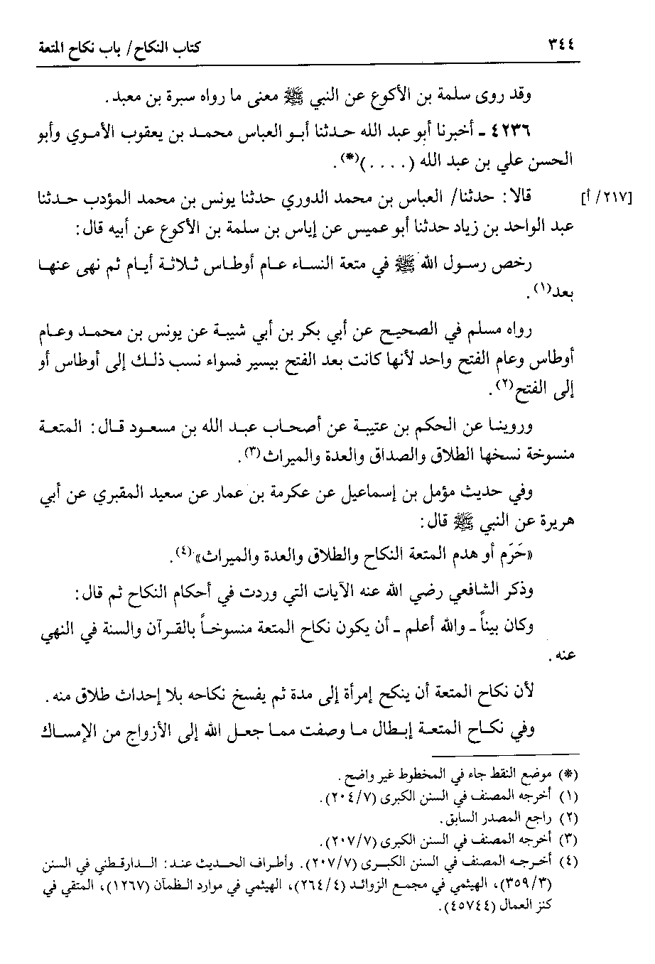 وذكر الشافعي رضي الله عنه الآيات التي وردت في أحكام النكاح ثم قال وكان بيناً _ والله أعلم _ أن يكون نكاح المتعة منسوخاً بالقرآن والسنة في النهي عنه.