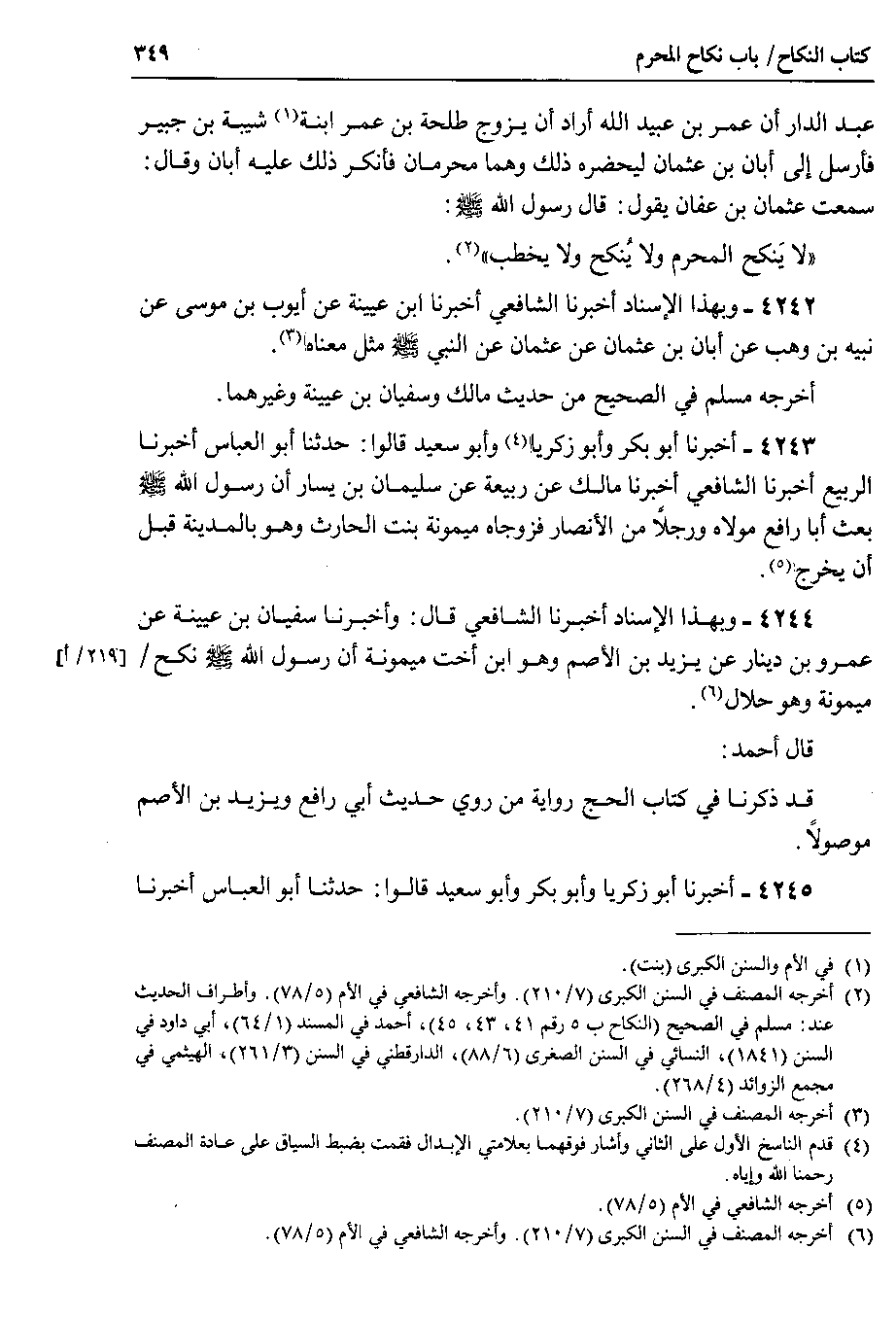 4242 - وبهذا الإسناد أخبرنا الشافعي أخبرنا ابن عيينة عن أيوب بن موسى عن نبيه بن وهب عن أبان بن عثمان عن عثمان عن النبي صلى الله عليه وسلم مثل معناه.