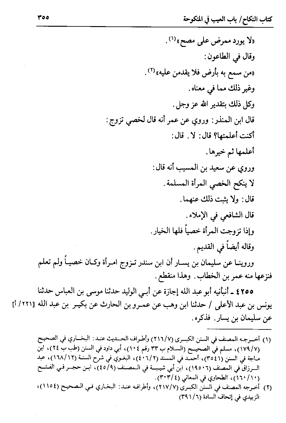 وروينا عن سليمان بن يسار أن ابن سندر تزوج امرأة وكان خصياً ولم تعلم فنزعها منه عمر بن الخطاب . وهذا منقطع.