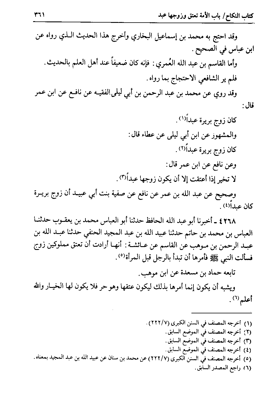 وصحيح عن عبد الله بن عمر عن نافع عن صفية بنت أبي عبيد أن زوج بريرة كان عبداً.