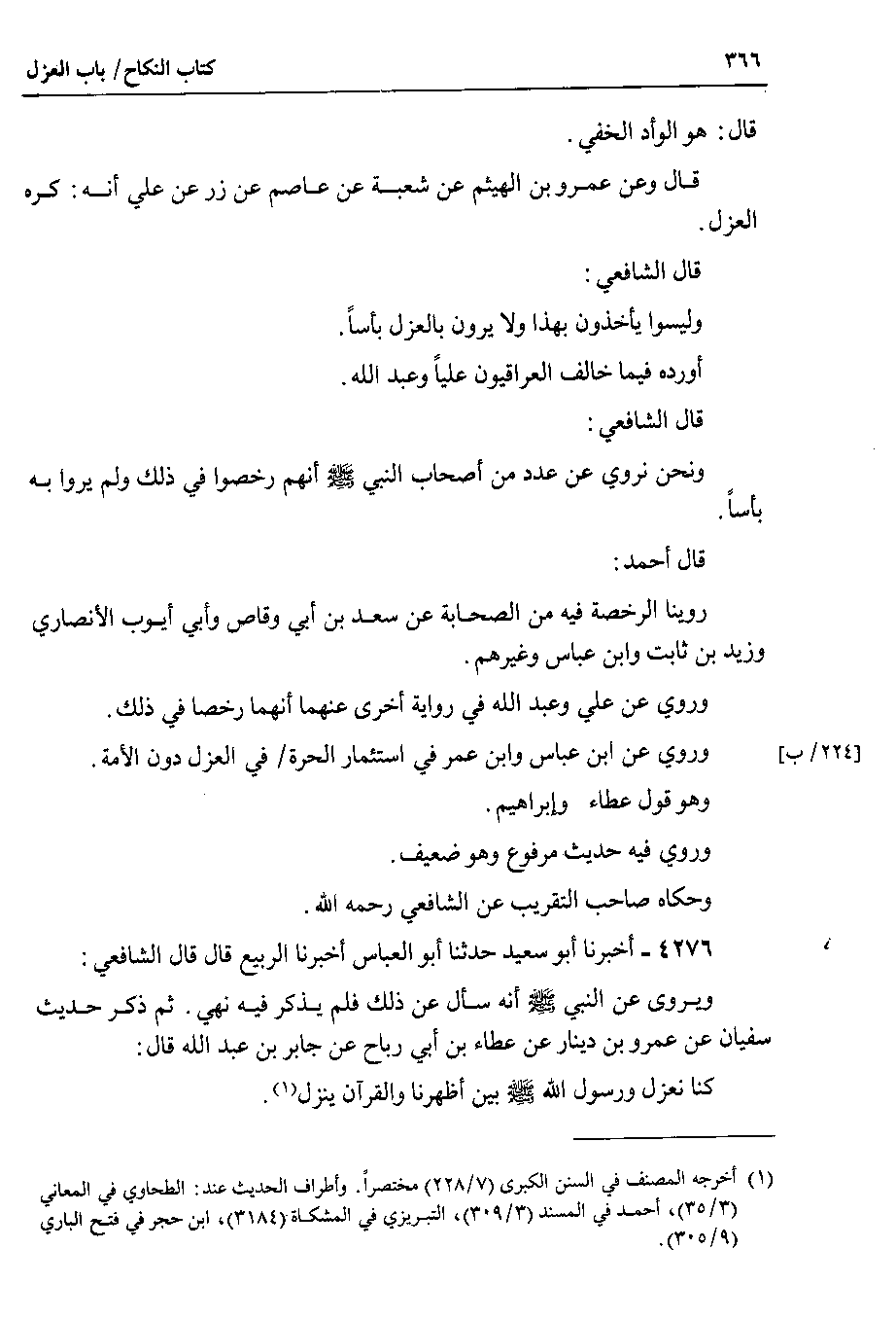 4276 - أخبرنا أبو سعيد حدثنا أبو العباس أخبرنا الربيع قال قال الشافعي ويروى عن النبي صلى الله عليه وسلم أنه سأل عن ذلك فلم يذكر فيه نهي . ثم ذكر حديث سفيان عن عمرو بن دينار عن عطاء بن أبي رباح عن جابر بن عبد الله قال كنا نعزل ورسول الله صلى الله عليه وسلم بين أظهرنا والقرآن ينزل.