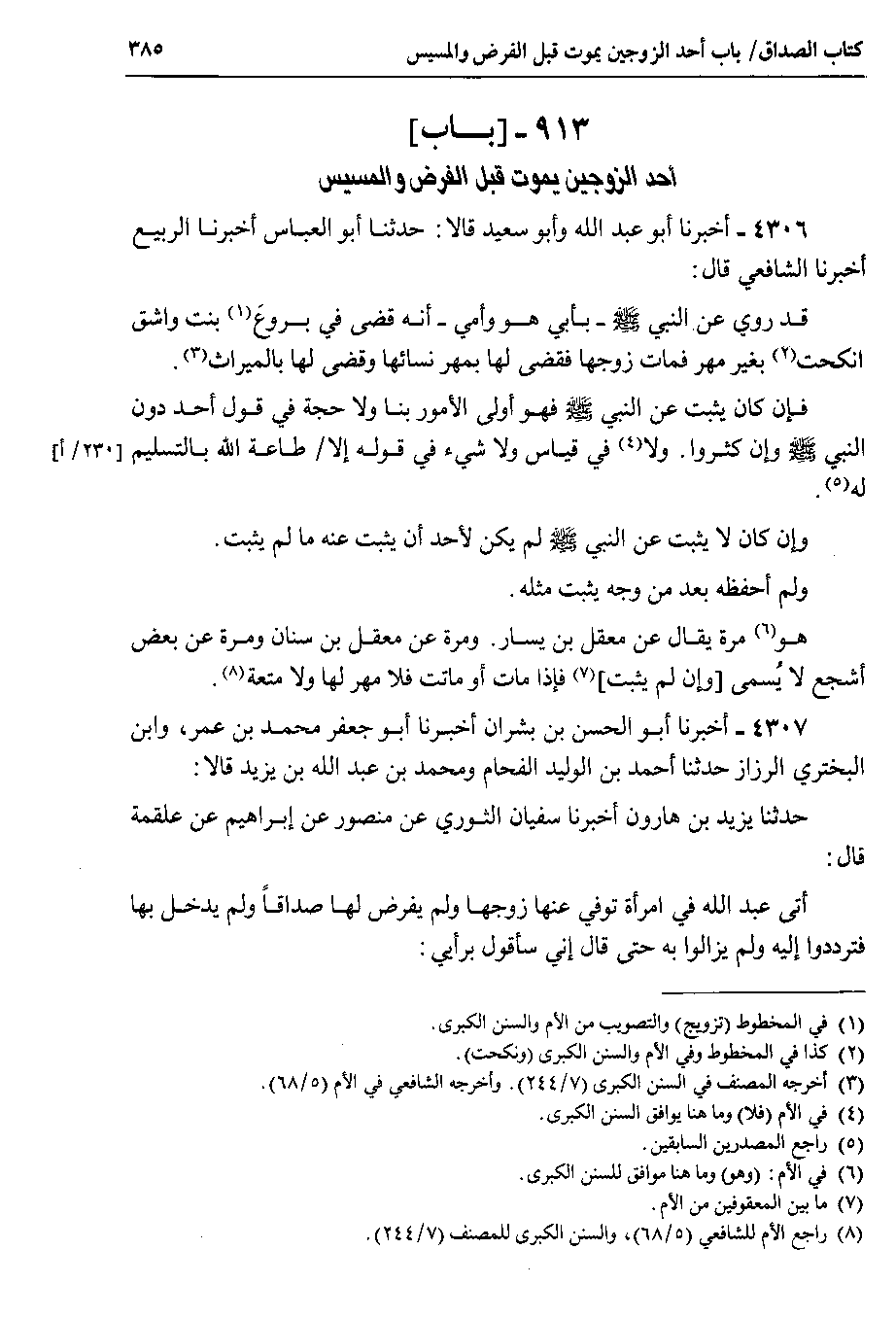 ( 913 - باب أحد الزوجين يموت قبل الفرض والمسيس