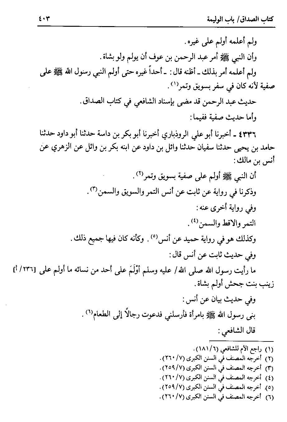 ولم أعلمه أمر بذلك - أظنه قال : - أحداً غيره حتى أولم النبي رسول الله صلى الله عليه وسلم على صفية لأنه كان في سفر بسويق وتمر.