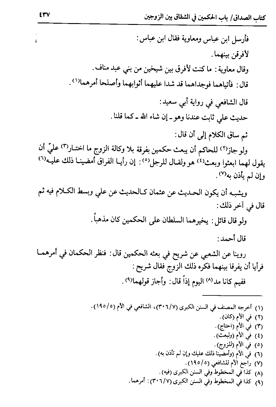 قال أحمد روينا عن الشعبي عن شريح في بعثه الحكمين قال : فنظر الحكمان في أمرهما فرأيا أن يفرقا بينهما فكره ذلك الزوج فقال شريح ففيم كانا مد اليوم إذاً قال : وأجاز قولهما.