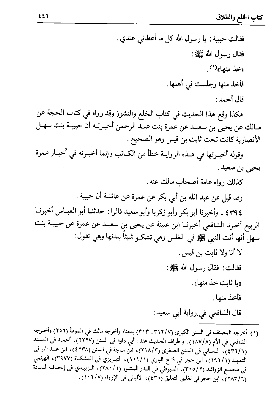 قال أحمد هكذا وقع هذا الحديث في كتاب الخلع والنشوز وقد رواه في كتاب الحجة عن مالك عن يحيى بن سعيد عن عمرة بنت عبد الرحمن أخبرته أن حبيبة بنت سهل الأنصاري كانت تحت ثابت بن قيس وهو الصحيح.