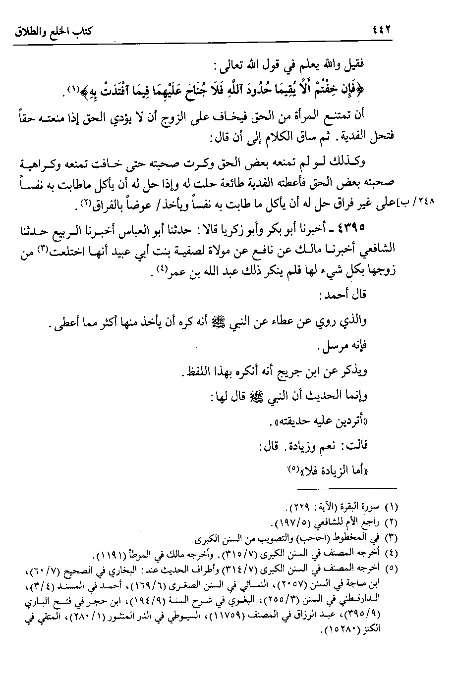 4395 - أخبرنا أبو بكر وأبو زكريا قالا : حدثنا أبو العباس أخبرنا الربيع حدثنا الشافعي أخبرنا مالك عن نافع عن مولاة لصفية بنت أبي عبيد أنها اختلعت من زوجها بكل شيء لها فلم ينكر ذلك عبد الله بن عمر.