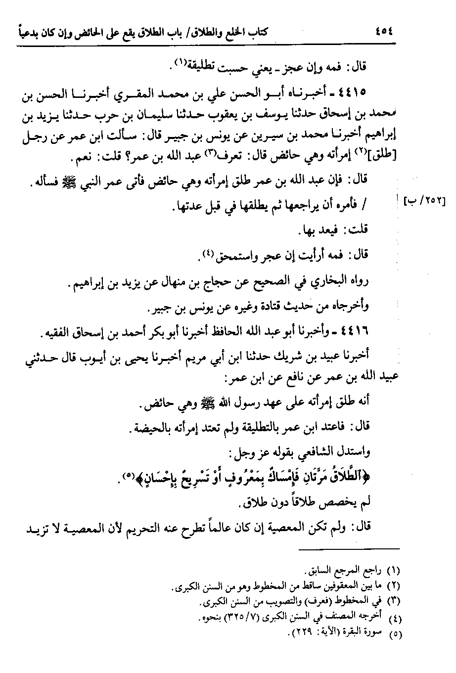 4415 - أخبرناه أبو الحسن علي بن محمد المقري أخبرنا الحسن بن محمد بن إسحاق حدثنا يوسف بن يعقوب حدثنا سليمان بن حرب حدثنا يزيد بن إبراهيم أخبرنا محمد بن سيرين عن يونس بن جبير قال : سألت ابن عمر عن رجل طلق امرأته وهي حائض قال : تعرف عبد الله بن عمر ؟ : قلت : نعم.